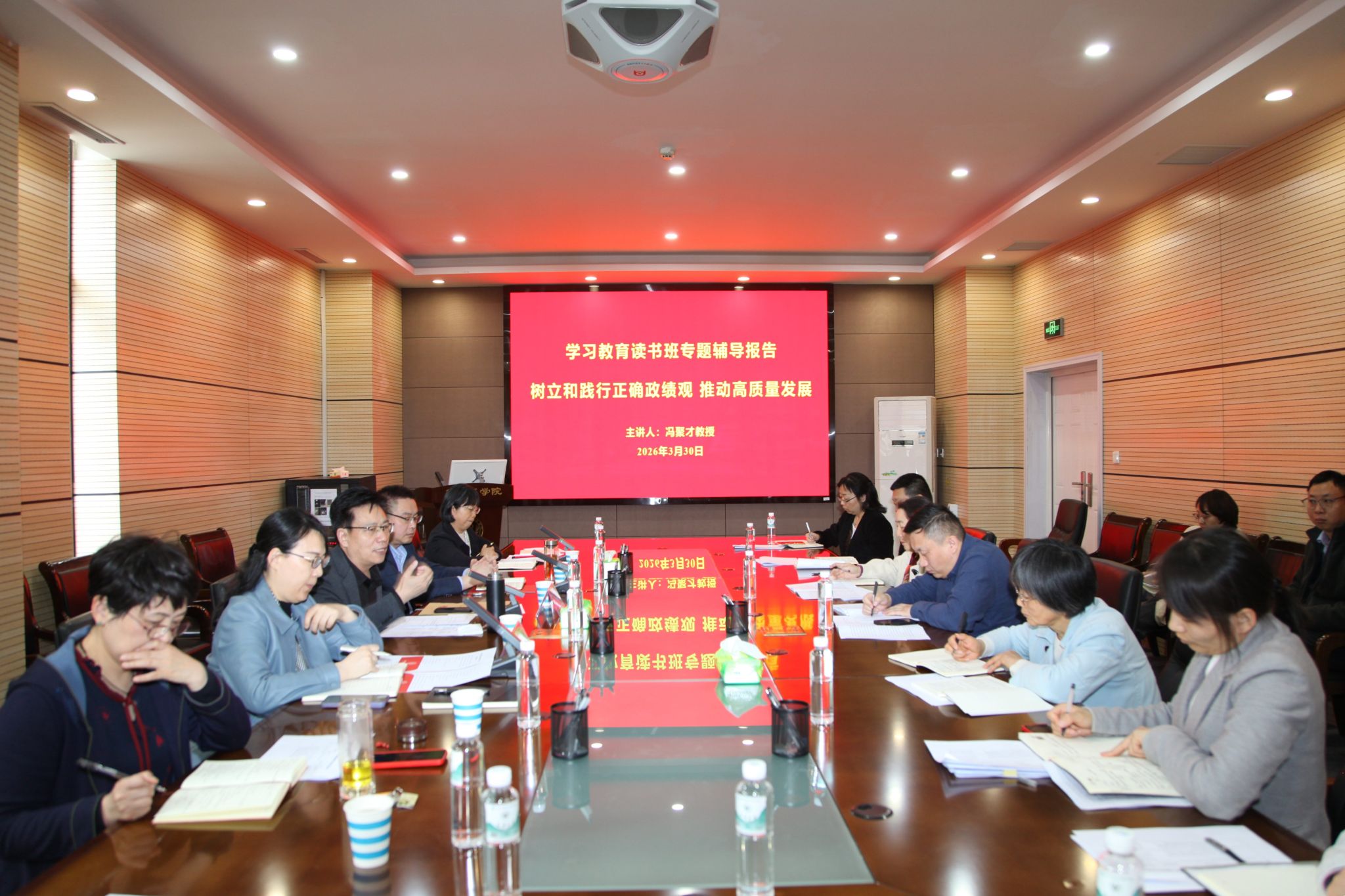 为深入学习贯彻习近平总书记关于树立和践行正确政绩观的重要论述,全面落实学校党委关于开展学习教育的决策部署,引导全院党员干部树立和践行正确政绩观,3月30日下午,学院举办树立和践行正确政绩观学习教育专题读书班开班式和专题报告会。学院领导班子成员、党委委员、纪委委员、各支部书记及系(中心)主任参加。