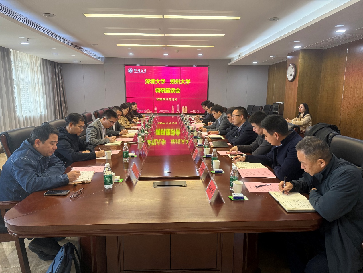 调研会上,陈继超对深圳大学同仁的来访表示热烈欢迎,并简要介绍了郑州大学历史沿革、办学规模、学科发展、人才培养及“双一流”建设成效。曹恒涛围绕党建业务深度融合、青年干部成长关怀、机关作风建设、服务师生经验做法以及机关特色品牌项目建设等进行了交流。蒋大军介绍了此次来校调研的背景情况以及深圳大学机关党建工作的特色做法。