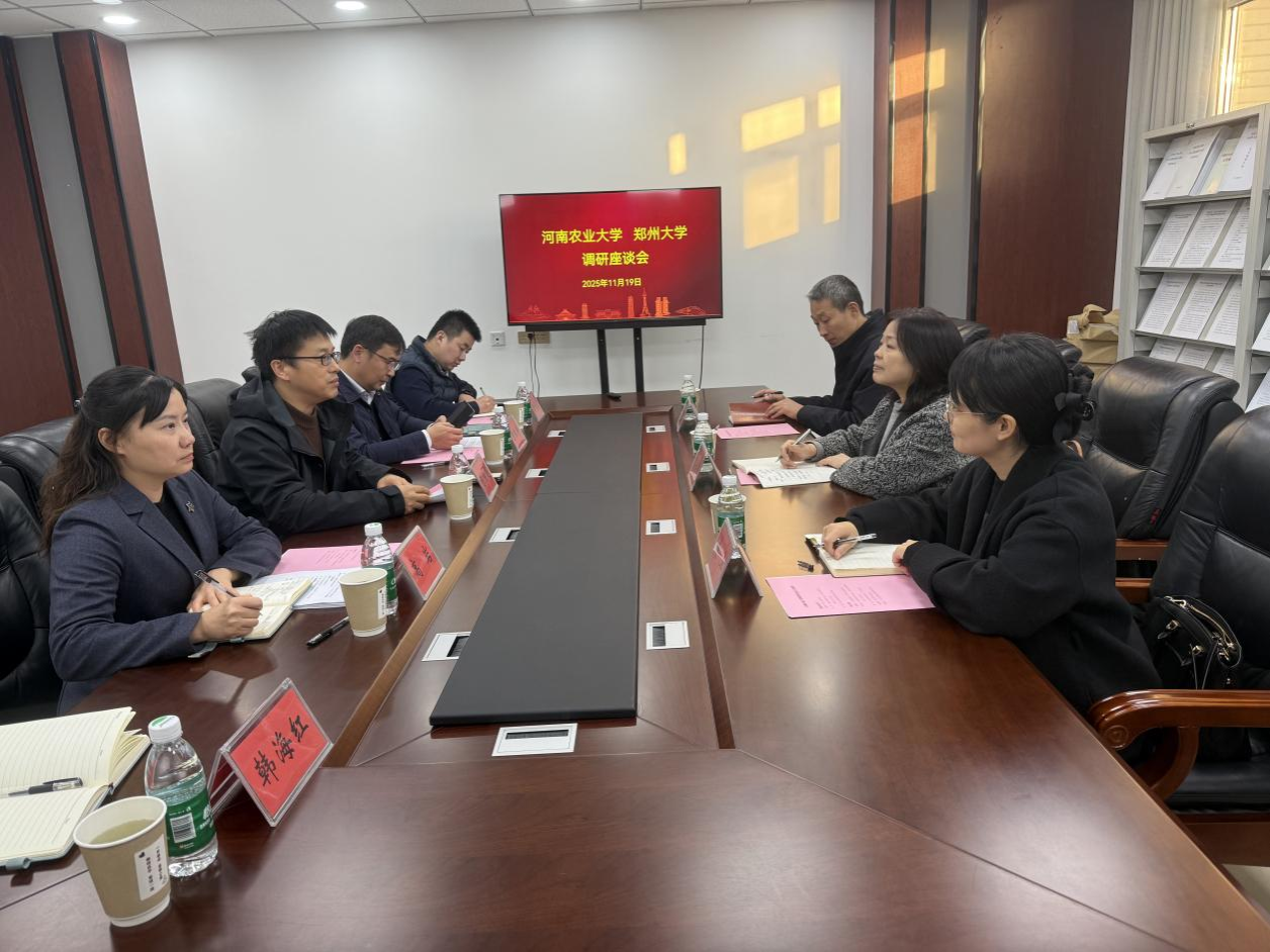 陈继超对闫俊萍一行的到来表示热烈欢迎,简要介绍了学校基层党建工作的特色做法与创新模式。他指出,河南农业大学与郑州大学地缘相近、人缘相亲、文缘相通,不仅秉持相互借鉴、携手共进的愿望,更具备协同发展的坚实基础。希望双方进一步加强交往交流,共商发展难题,共享发展经验。