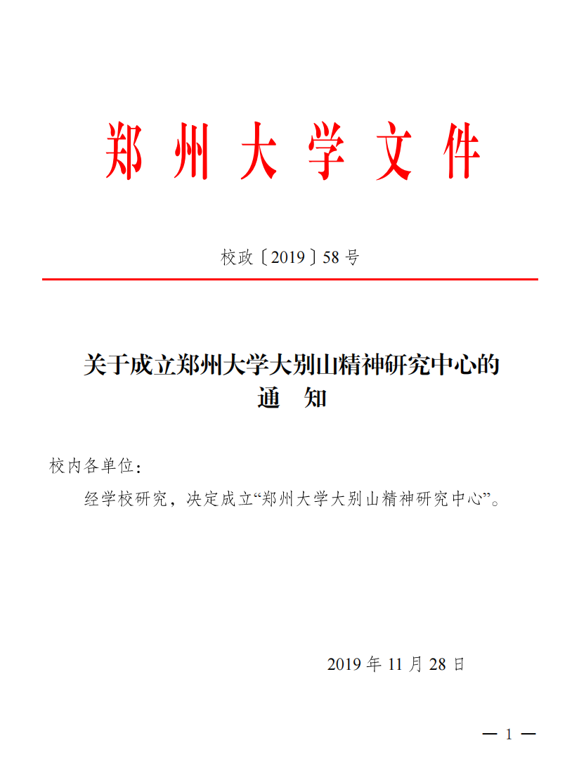 为了深入贯彻落实习近平总书记重要讲话精神,郑州大学充分利用学科平台和专业优势,整合研究力量,于2019年10月成立郑州大学大别山精神研究中心,作为深化研究、传承和弘扬大别山精神的重要载体,并于10月27日举行大别山精神研究中心揭牌仪式,来自中共中央党史和文献研究院、教育部社科中心、中共河南省委党史研究室、信阳市委、郑州大学的领导到会致辞、揭牌。中心成立以来,始终定位为国内一流的大别山精神研究机构,致力于推出一批影响全国的大别山精神研究成果。