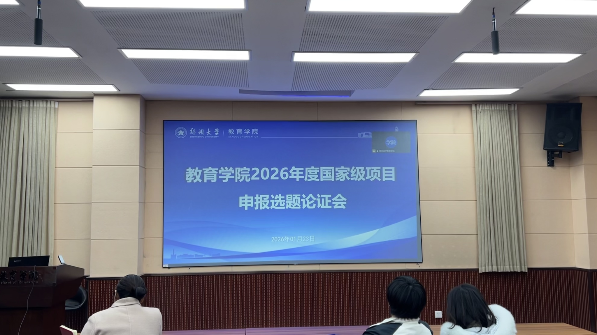 2026年1月23日,郑州大学教育学院以线上线下相结合的形式,成功举办了本年度国家级项目申报选题论证会。会议邀请教育学和心理学领域的多位专家参与,为申报教师提供专业指导与建议。此次论证会的开展,旨在进一步提高学院国家级项目申报水平,促进学科建设和学术发展。