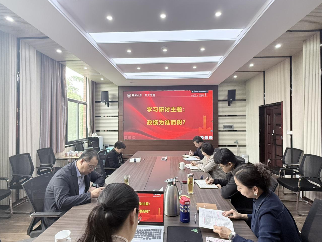 4月13日上午,教育学院举行树立和践行正确政绩观学习教育读书班第二次集中学习与研讨交流。学院党委书记谭宇同志主持会议,学院全体党委委员参加学习。