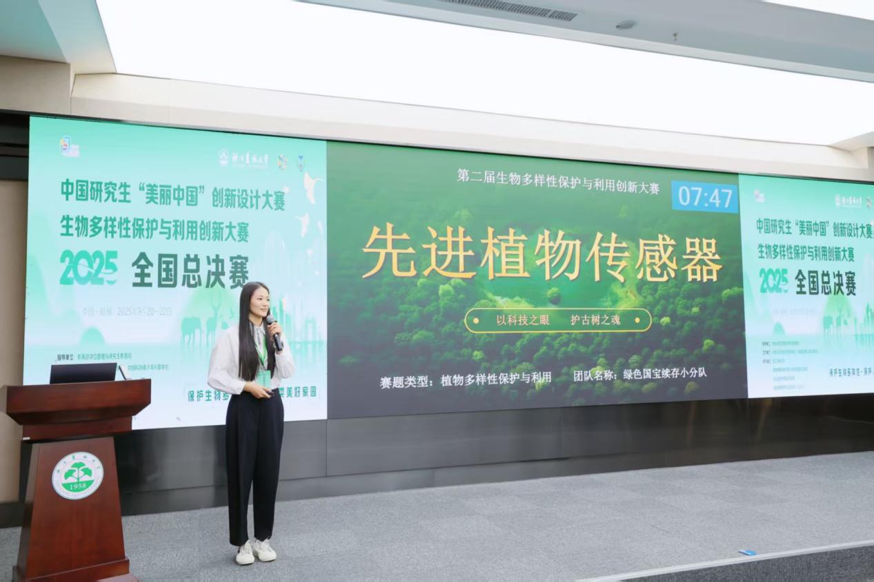 2025年9月20日至9月22日,2025年中国研究生“美丽中国”创新设计大赛——生物多样性保护与利用创新大赛全国总决赛在杭州举办。全校共有2支队伍报名参赛,队伍成员均为我院研究生,且2支队伍均进入全国总决赛。其中王欣楠团队项目《先进植物传感器》荣获国家一等奖,其指导教师周琪被评为优秀指导老师;许佩阳团队项目《寡聚半乳糖醛酸防控食源性致病菌的天然抗菌剂开发》荣获国家三等奖,指导老师为朱家庆、付留洋。据悉,此次大赛共有来自181家培养单位的454支队伍参加。