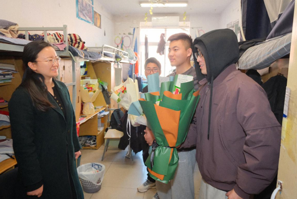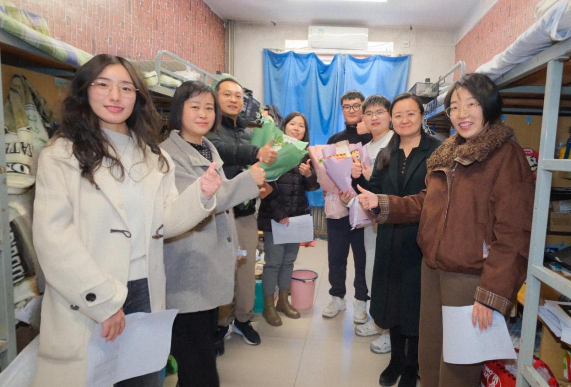 考研冲刺阶段,郑州大学生命科学学院党委副书记熊杰带领毕业班辅导员、班主任走进学生宿舍,为学院全体考研学子送上精心准备的定制“加油”花束,以真挚关怀为考研同学追梦注入温暖力量。