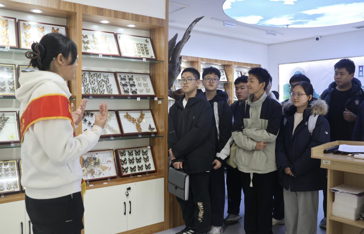 郑州中学师生首先走进学院标本馆。馆内丰富的动植物标本和系统的分类展示,构建出一部鲜活立体的“生命百科全书”。学院科普志愿者结合实物标本,深入浅出地讲解生物多样性保护、生态平衡维系等知识,引导高中生深刻领悟人与自然和谐公升的重要意义,在青少年心中播撒下尊重自然、热爱生命的种子。