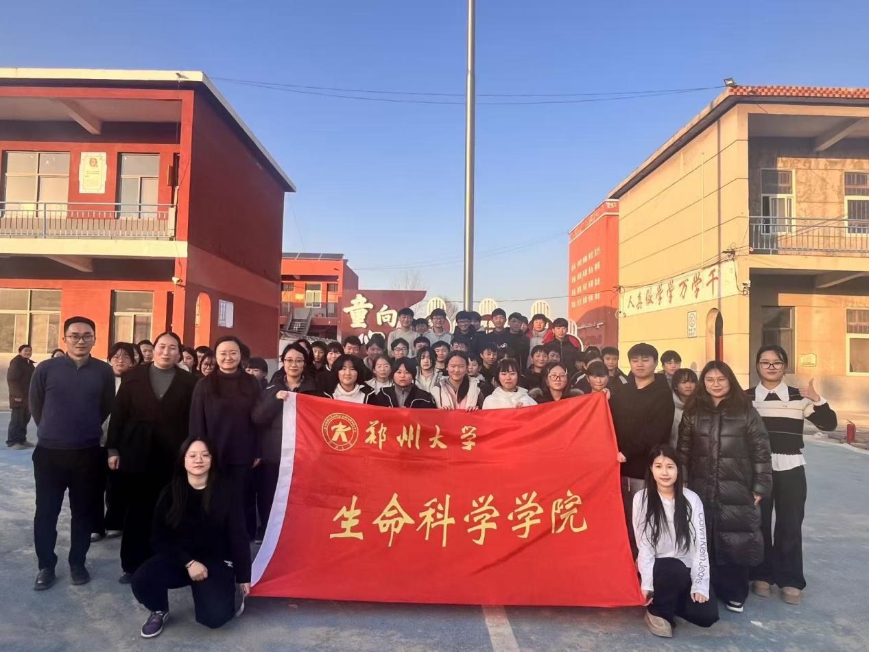 为弘扬科学精神、激发青少年对生命科学的探索兴趣,2026年1月15日,郑州大学生命科学学院党委副书记熊杰、团委书记张天雨、副教授睢晓洁、辅导员王璐带领生命科学学院科普团队,走进安阳市滑县上官镇第三初级中学,开展“搭建生科启智桥梁,传递基础学科之光”主题科普活动。本次活动通过“理论+实践”深度融合的形式,为乡镇中学学生带来了一场兼具启发性与互动性的科学体验。