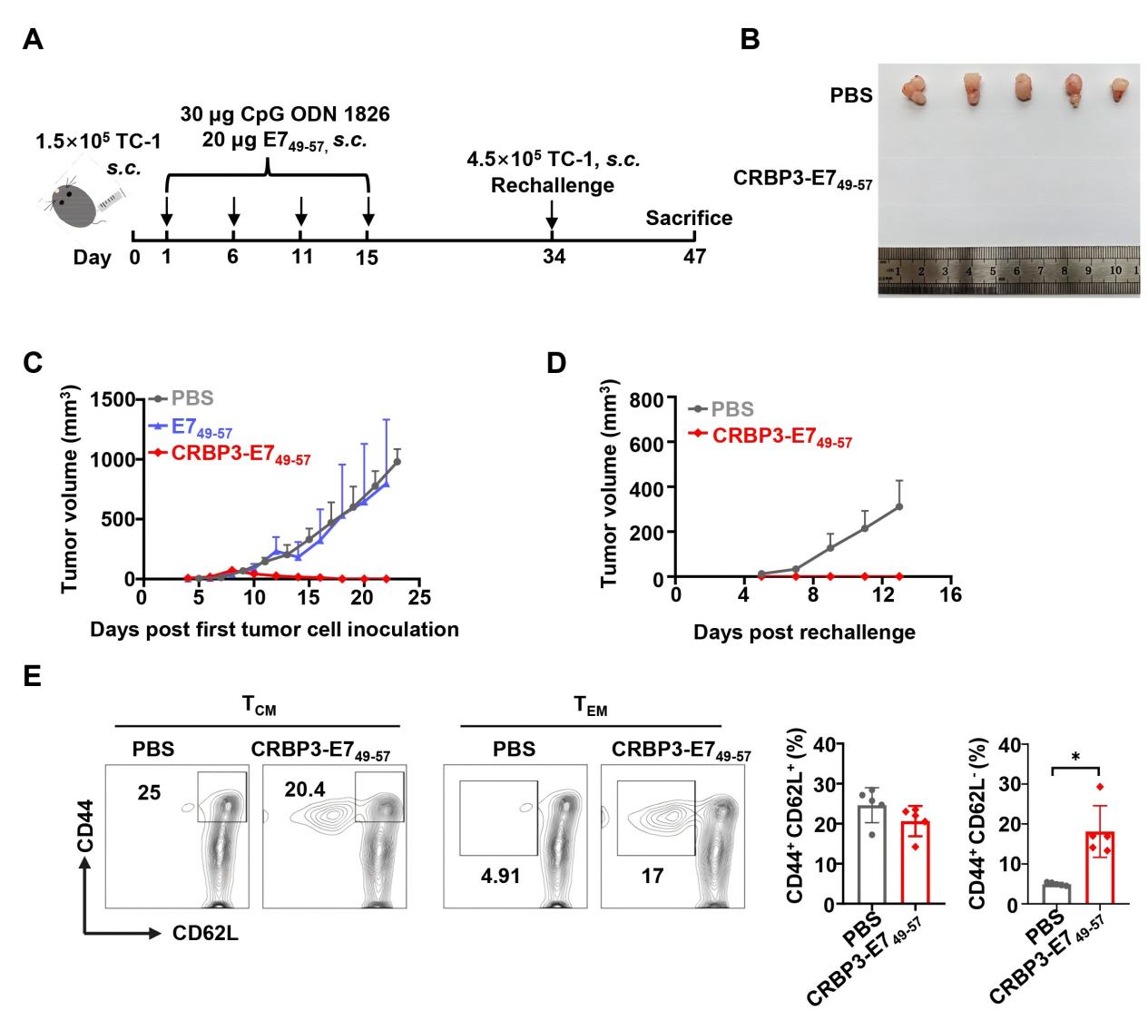 肿瘤多肽疫苗临床应用的最大问题是疫苗的靶向性以及体内激活CD8+T细胞的效果不佳,这也是绝大多数肿瘤多肽疫苗临床失败的主要原因。为了解决这一问题,通过表面受体特异性靶向专职性抗原提呈细胞—树突状细胞是一种有前景的策略。CCR7,一种趋化因子受体,在树突状细胞的迁移和淋巴结归巢中发挥着至关重要的作用,成为开发靶向树突状细胞免疫疗法的理想靶点。在本研究中,通过噬菌体展示肽库技术和亲和实验,课题组筛选获得一条能够特异性靶向CCR7的多肽CRBP3。在体外实验中,CRBP3能够高效亲和及被未成熟和成熟的树突状细胞内吞。在小鼠足垫部位注射后,CRBP3能够有效积聚到腘窝淋巴结中。当CRBP3与抗原表位肽OVA257-264偶联时,无论树突状细胞是否成熟,偶联肽疫苗(CRBP3-OVA257-264)均能显著增强树突状细胞表面的第一信号—抗原肽/ MHC-I复合物的形成,并显著促进抗原特异性CD8+T细胞的增殖以及IFN-γ+CD8+T细胞的比例。体内抗肿瘤活性实验结果显示,CRBP3与外源性抗原肽OVA257-264和内源性抗原肽HPV16 E749-57偶联后,分别在抗PD-1响应性的B16-OVA小鼠模型和抗PD-1不响应的TC-1肿瘤模型中展现出显著的抗肿瘤免疫应答。值得注意的是,CRBP3-E749-57偶联肽疫苗在TC-1肿瘤模型中诱导了肿瘤的完全消退,并且在三倍荷瘤细胞的再挑战时仍能提供持久的保护,抑制肿瘤的发生。该工作证明了靶向CCR7能够显著增强肿瘤多肽疫苗的体内抗肿瘤免疫应答,表明CCR7靶向肽可以作为一种多功能的工具用于开发淋巴结靶向的癌症免疫疗法。该研究得到了国家自然科学基金面上项目,河南省优秀青年基金项目等基金的支持。