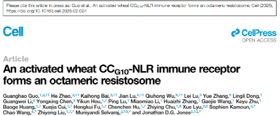 2026年3月20日,国际顶级学术期刊《Cell》在线发表了郑州大学生命科学学院白凯红博士以共同第一作者参与完成的重要科研成果。该研究首次揭示了小麦CCG10 NLR免疫受体WAI3八聚体抗病小体结构与植物先天免疫调控新机制,为作物广谱抗病育种与绿色农业发展提供了关键理论支撑。
