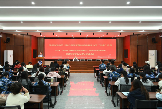 9月19日晚,郑州大学关心下一代工作委员会常务副主任吴宏阳在政治与公共管理学院一楼报告厅举办“四爱教育”专题讲座,政治与公共管理学院党委书记于建军、党委副书记、院关工委主任刘娟,全体辅导员老师,2025级本科新生参加此次讲座。