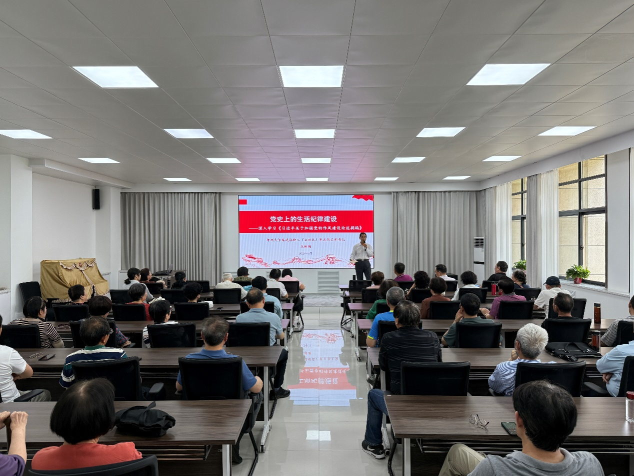 主校区退休党支部先后于5月16日、5月27日分别邀请主校区退休第五党支部书记、校马克思主义学院原党委书记王振国和校纪委正处级巡察专员、正处级组织员、校党风廉政建设研究中心李振伟做题为《党史上的生活纪律建设——深入学习<习近平关于加强党的作风建设论述摘编>》《落实中央八项规定精神 锲而不舍纠正“四风”问题》的专题报告。王振国从保持艰苦奋斗的生活作风、遵守良好家风的生活规矩、养成健康文明的生活方式三个方面,结合新时代背景下党的建设新要求,用真实事例生动阐释党的作风建设关系党的形象、关系人心向背、关系党的生死存亡,以及加强党的作风建设的重要性和深刻内涵。李振伟结合案例对中央八项规定精神进行深入细致的解读,深刻分析问题产生原因,并对落实中央八项规定精神给出举措和中肯建议。