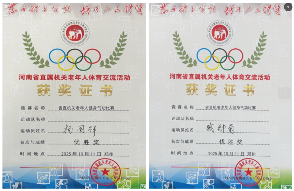 2025年河南省直属机关老年人健身气功比赛于近日在河南省老干部活动学习中心成功举办。主校区退休职工积极组队参赛,团结协作、发挥出色,在集体与个人项目中均取得优异成绩。