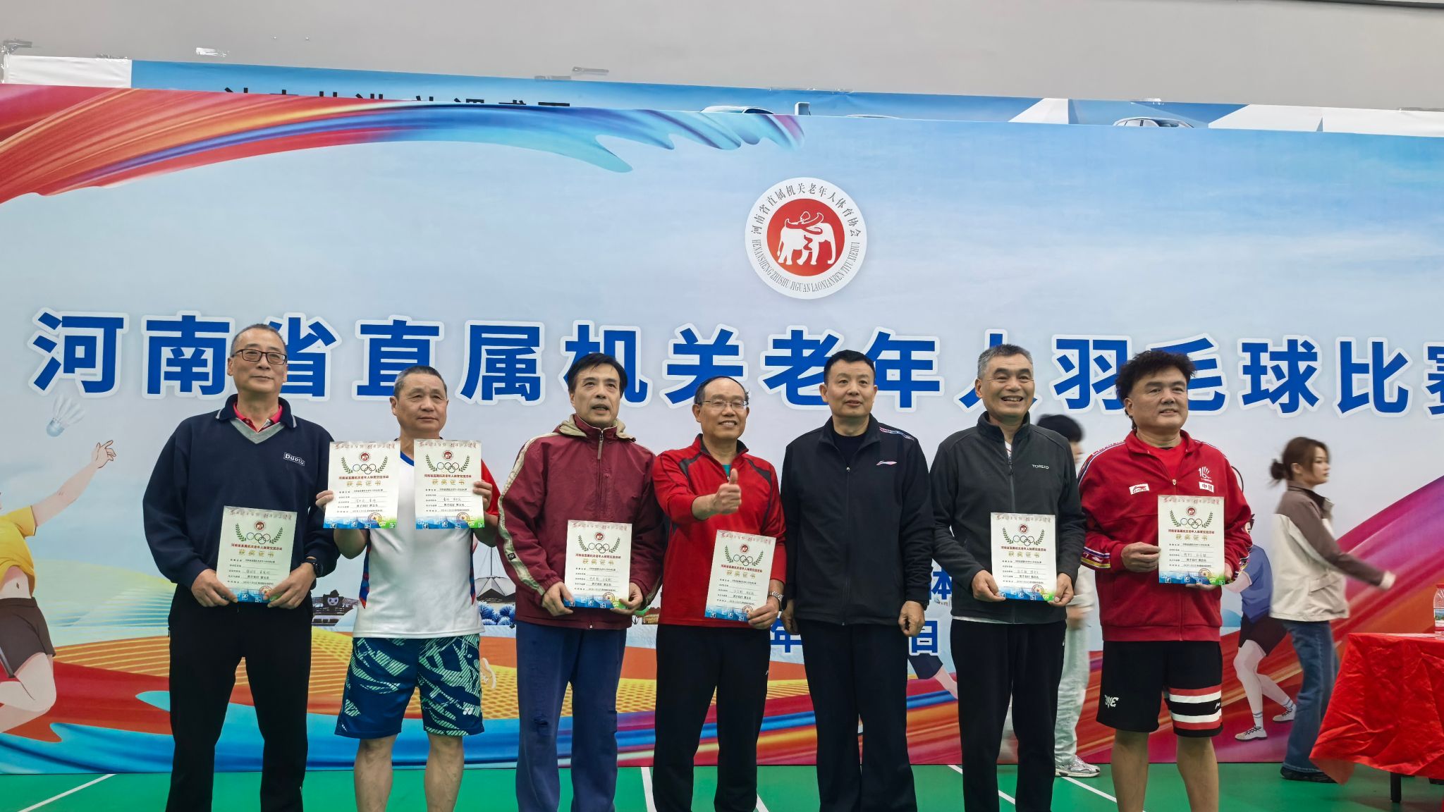 2025年11月5日,由河南省直机关老年人体育协会主办的“2025年河南省直机关老年人羽毛球比赛”在省超继全能基地体育馆隆重举行。主校区和北校区联系派出了混双3对、男双2对、女双1对共6对选手参加比赛。