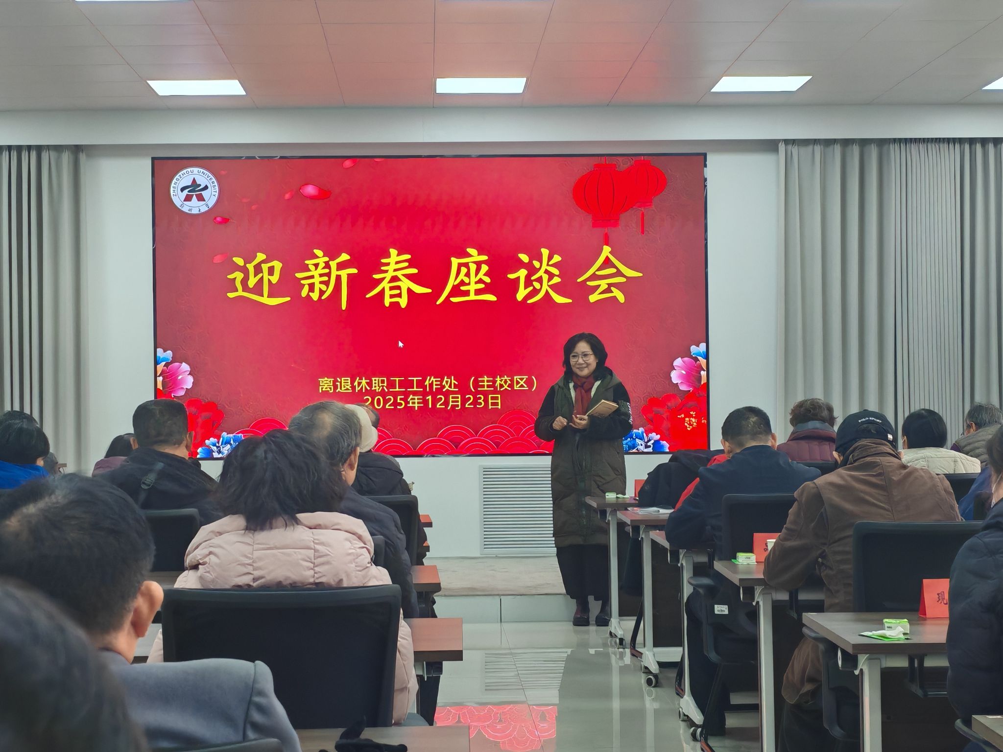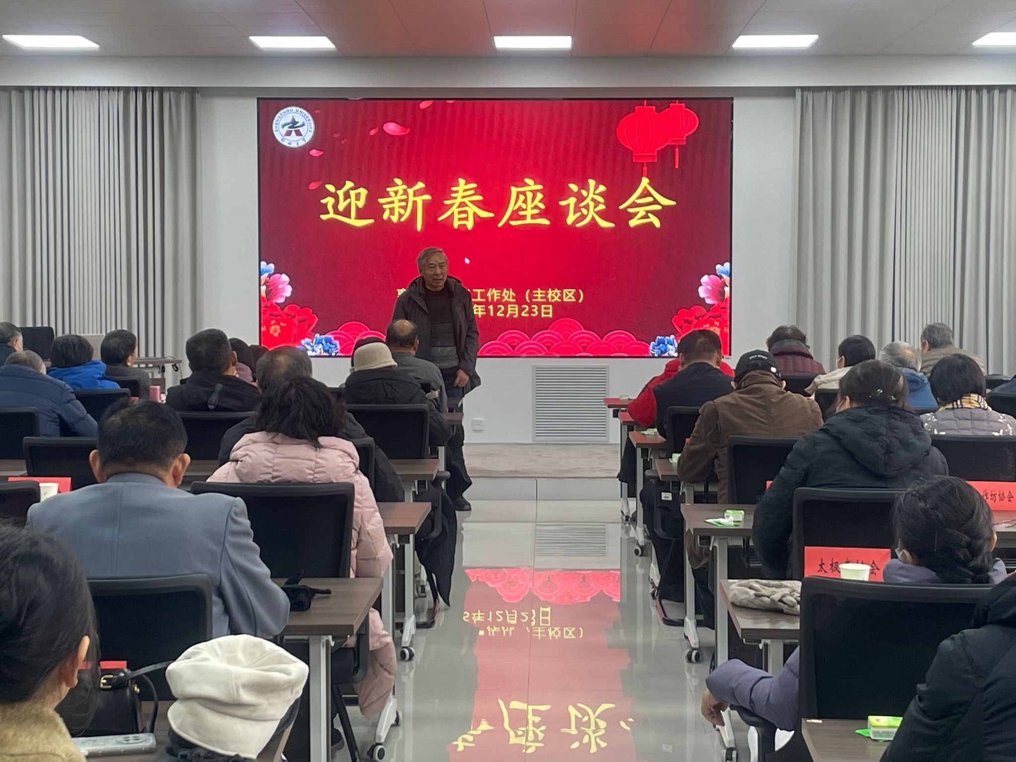 寒冬辞旧岁,瑞雪迎新春。为切实做好离退休职工服务工作,营造温馨祥和的节日氛围,12月23日,主校区在离退休职工活动中心召开离退休职工迎新春座谈会。退休党支部书记、委员、骨干党员、老干部大学校长、文体协会会长、骨干会员及老专家代表共计50余位老同志欢聚一堂,共叙同事情谊,共话发展新篇,共迎新春佳节。