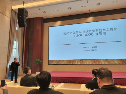 6日下午,韩晓明教授在“华侨华人与中原根脉研讨交流活动”作《世纪之交东南亚华文教育的两次转变(1900、2000)及影响》的主旨发言,分别阐述了东南亚华文教育在1900年前后由原生语言教育转变为爱国(中国)民族语言教育、2000年前后由界限不明的语言教育转变为各国“本土化”语言教育、两次转变的意义及中国的应对。即,一是对“侨”的作用要有新理解;二是对“侨”的发展要有新思路;三是中国要加强“侨情”教育。