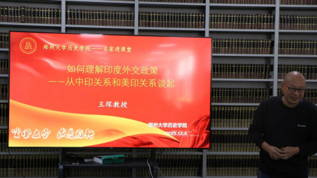 12月4日中午,郑州大学嵩山论坛——名师学人讲座第六十八讲在历史学院201会议室顺利举行。本次讲座特邀历史学院王琛老师作题为《如何理解印度外交政策——从中印关系和美印关系谈起》的专题讲座。这次讲座由历史学院副院长庞卫东教授主持,学院50余名师生参加。