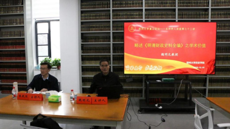 12月10日上午,郑州大学嵩山论坛——“名师学人讲座”第七十三讲在历史学院201资料室顺利举行。本次讲座特邀中国社会科学院“登峰战略”资深学科带头人、中国社会科学院大学特聘教授、中国社科院经济所二级研究员、博士生导师魏明孔教授作题为略述《明清财政史料全编》之学术价值的专题讲座。我院张民服教授主持本次讲座,中国史、世界史专业三十余名师生参加。