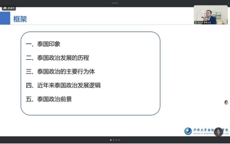 12月17日下午,郑州大学嵩山论坛——名师学人讲座第七十六讲顺利举行。本次讲座采取线上形式,特邀华侨大学国际关系学院副院长、泰国研究所副所长刘文正教授作题为《泰国政治发展的内在逻辑与前景》的专题讲座。历史学院副院长庞卫东教授主持本次讲座,世界史专业20余名师生参加。