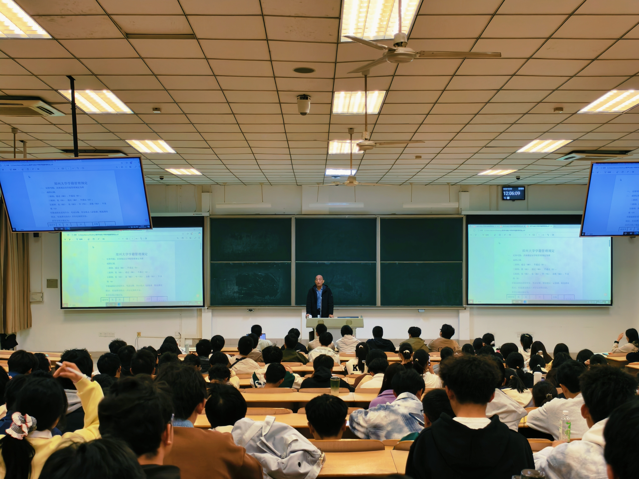 为帮助2025级新生全面了解学校学籍管理相关规定与政策,尽快适应大学学习生活,10月30日晚19:00,我院在北核心教学楼北1-103教室开展了《郑州大学学籍管理规定》专题讲解活动。学院本科教学管理办公室主任李俊强老师主讲,新生辅导员尚越、姜柯帆以及2025级全体新生参加本次活动。