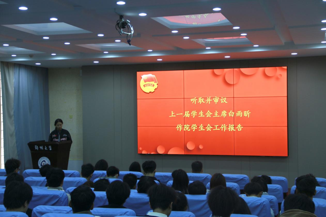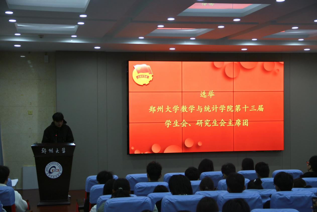 会议期间,上一届学生会主席白雨昕以及研究生会主席王子铭分别作了学院学生会工作报告,总结了过去一年学生会、研究生会取得的丰硕成果,并对未来工作的发展方向进行了展望。随后,大会听取并审议了《郑州大学数学与统计学院第十三次学生代表大会代表资格审查报告(草案)》,并选举产生了郑州大学数学与统计学院第十三届学生会、研究生会主席团成员。