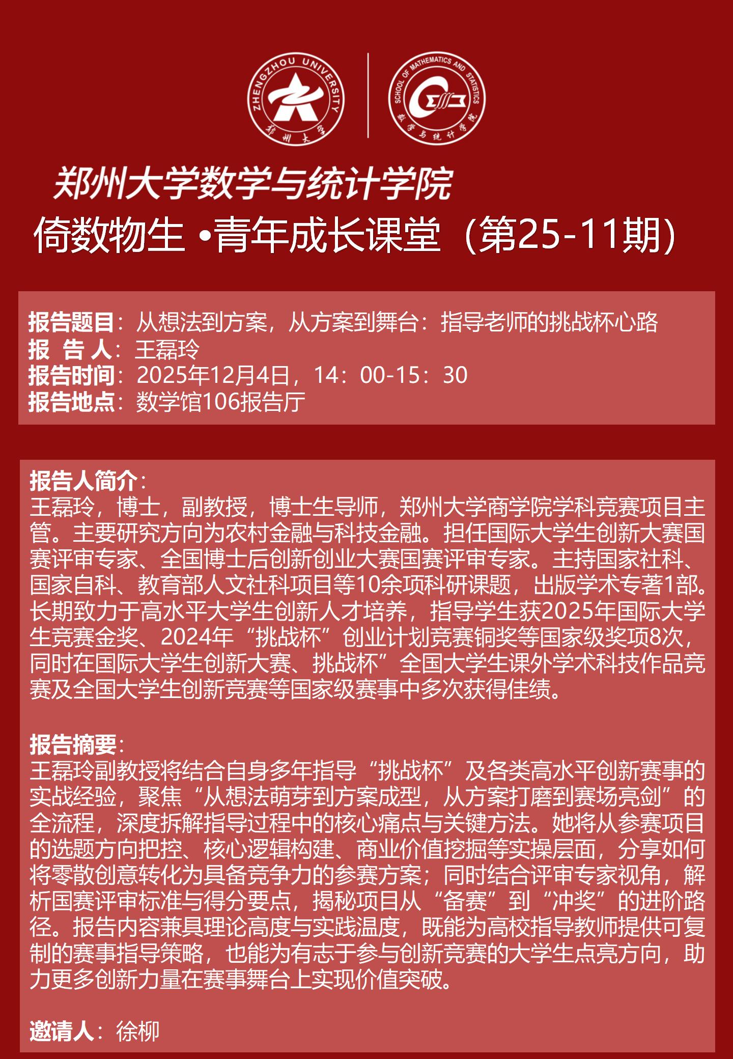 下一篇:倚数物生·青年成长课堂第25-10期——数学与统计学院2025年社会实践总结暨挑战杯动员专题报告