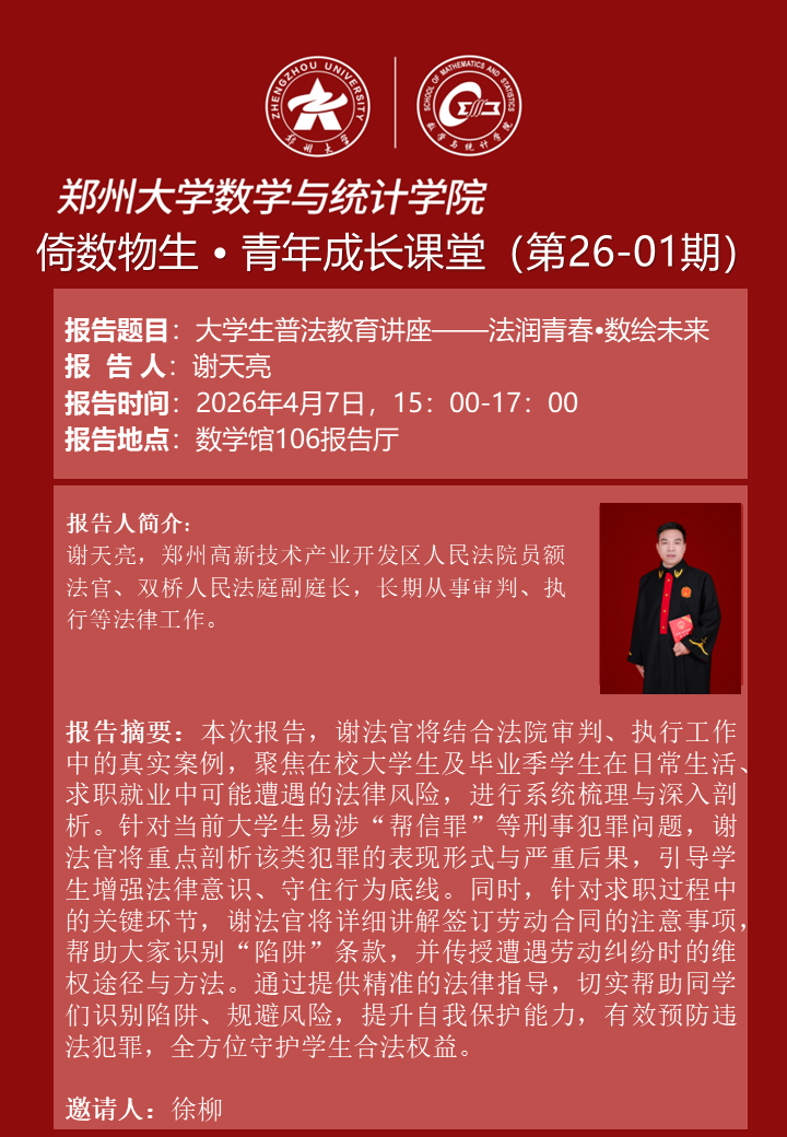 倚数物生·青年成长课堂第26-01期《大学生普法教育讲座——法润青春·数绘未来》