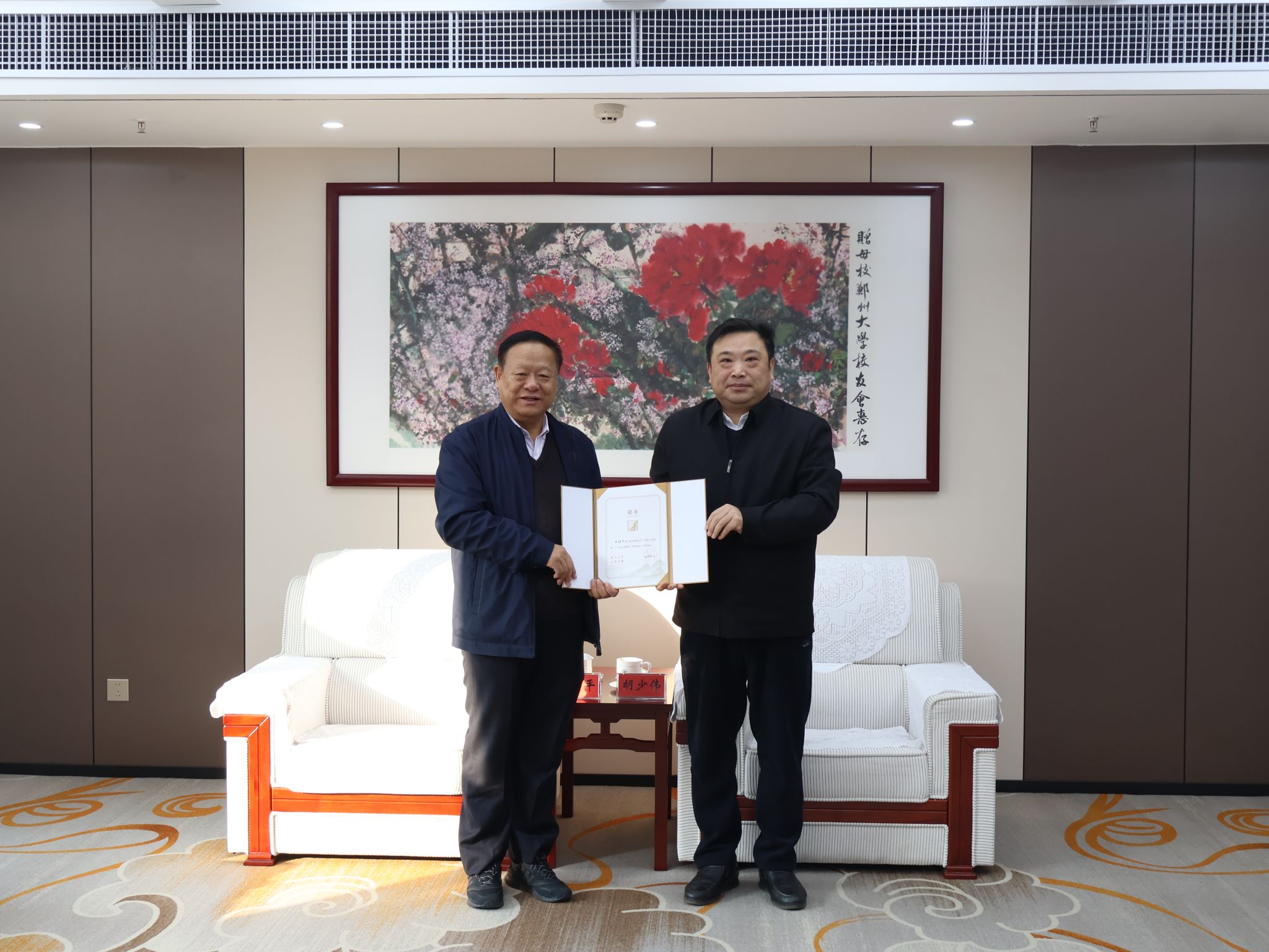 校党委常委、副校长胡少伟为北京大学博雅讲座教授、中国科学院院士、中俄数学中心主任张继平颁发“嵩阳大讲堂”主讲嘉宾证书。