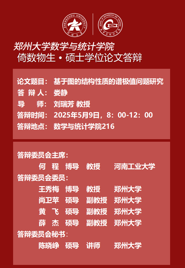 数学与统计学院硕士学位论文答辩公示(二)