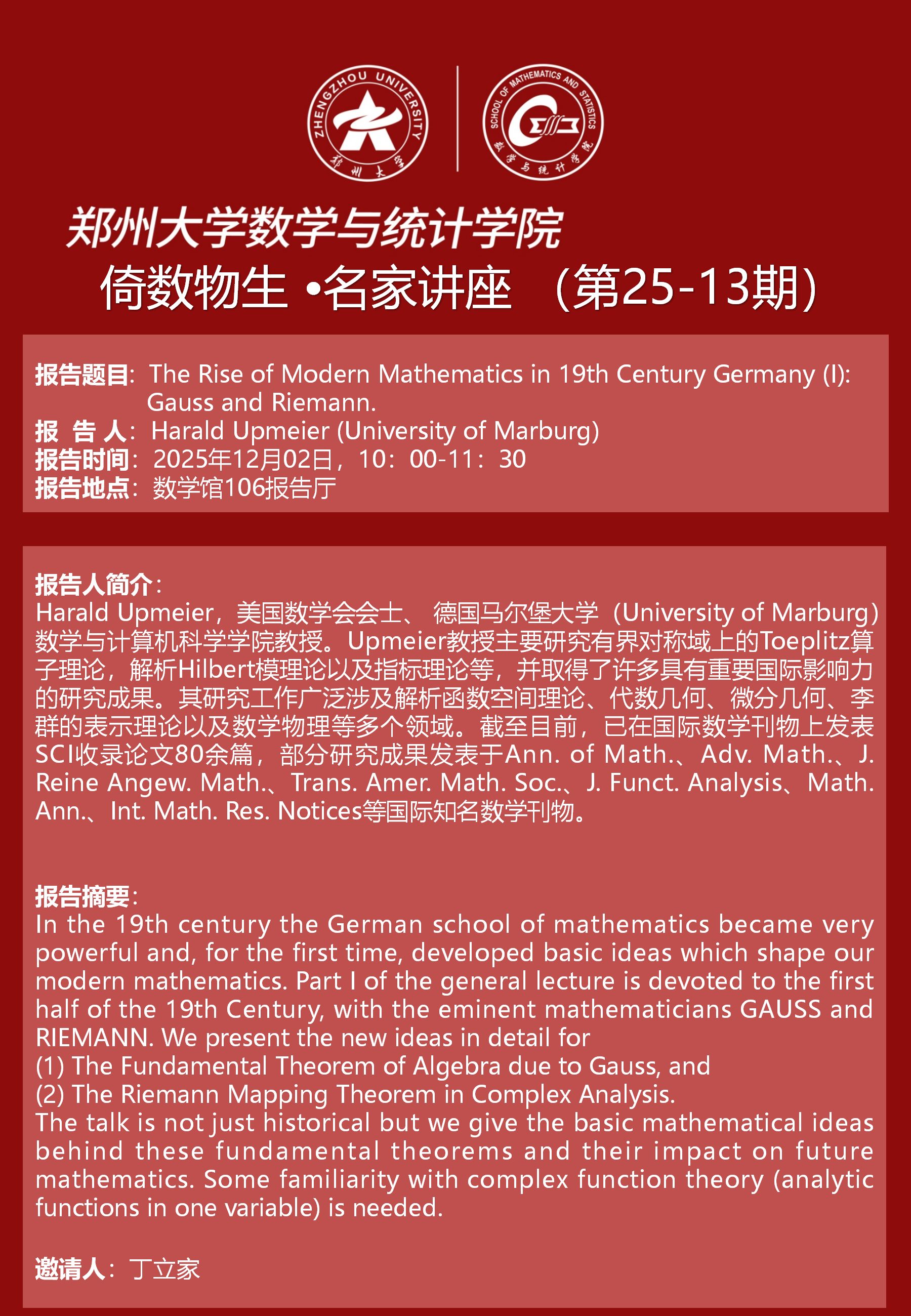 上一篇:倚数物生·名家讲座第25-14期《The Rise of Modern Mathematics in 19th Century Germany (II):Hilbert》