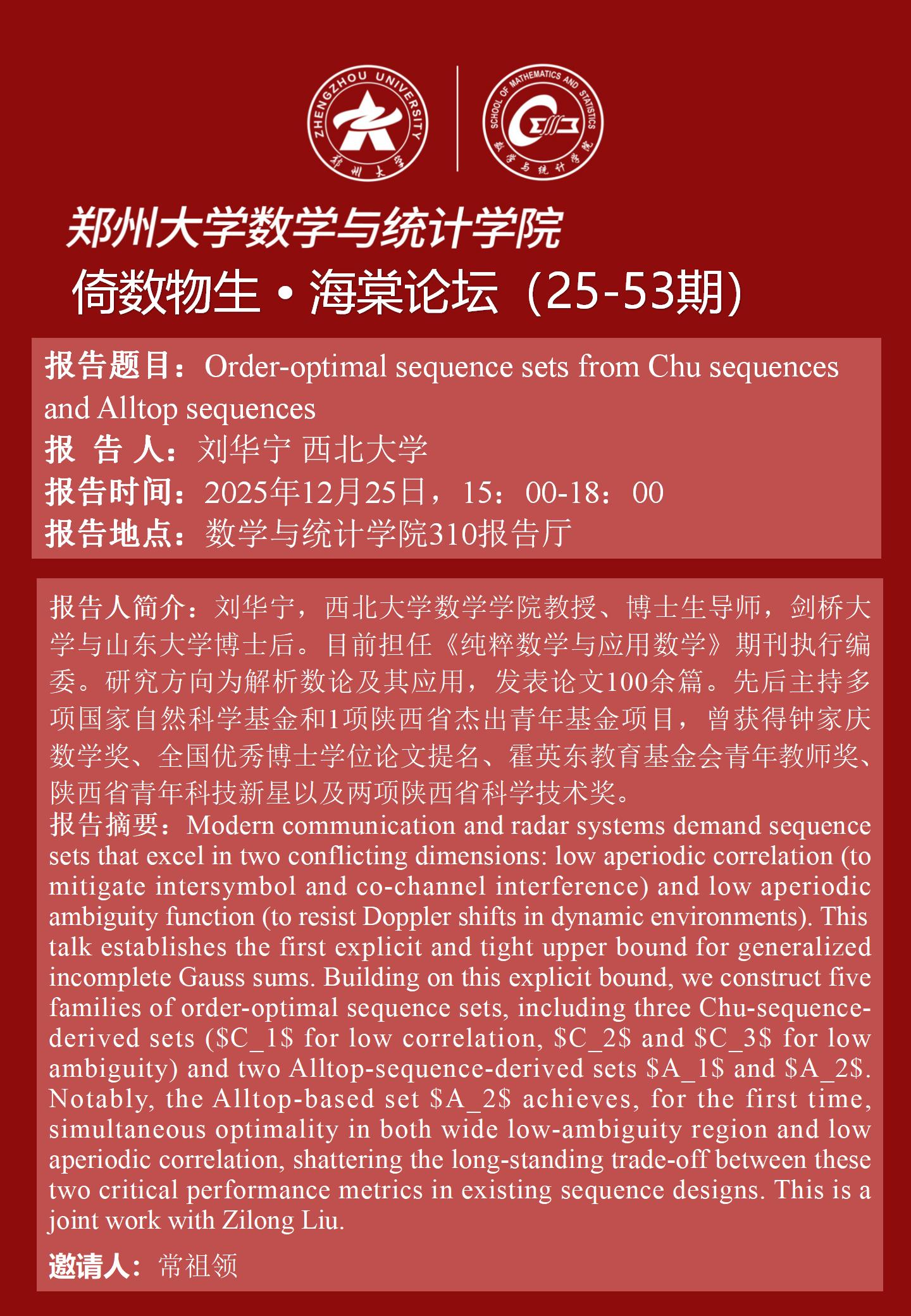 倚数物生·海棠论坛第25-53期《Order-optimal sequence sets from Chu sequences and Alltop sequences》