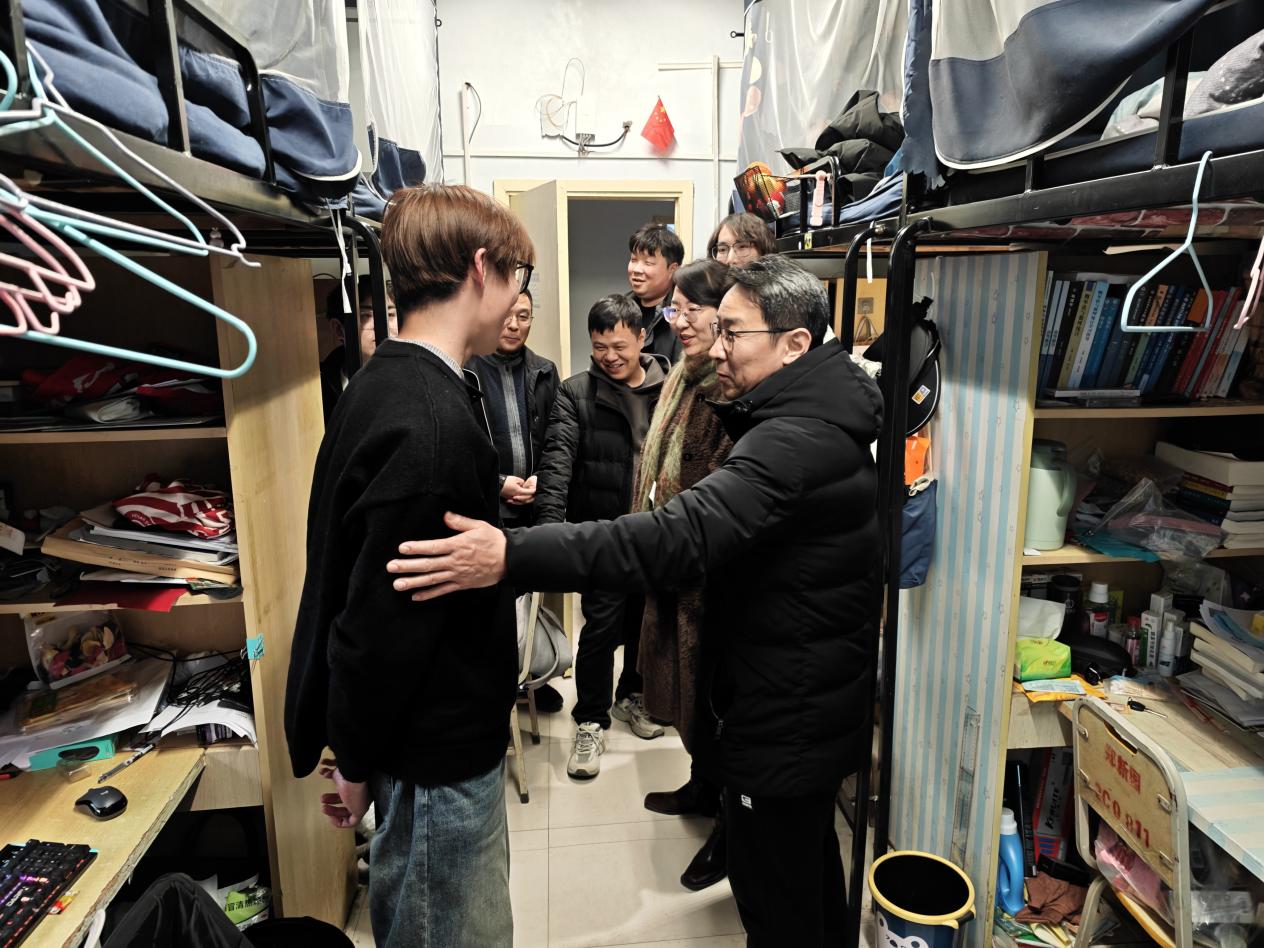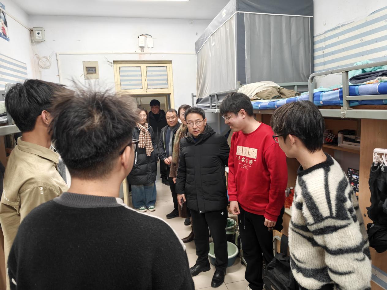 走访过程中,学院领导与同学们亲切交谈,详细询问大家的假期生活、返校适应情况以及新学期的学习规划。牛海军勉励同学们及时调整状态,以饱满的热情投入到新学期的学习生活中,叮嘱大家要严格遵守校纪校规,注意宿舍设备安全,提高防范意识,严防电信、网络诈骗,守护好个人财产安全,共同营造安全、整洁、和谐的生活环境。张珂、庄东刚分别就职业发展、学业规划、生活服务等方面与学生进行了交流,认真听取同学们的意见和建议,并表示学院将始终坚持以学生为本,全力为同学们的成长成才保驾护航。