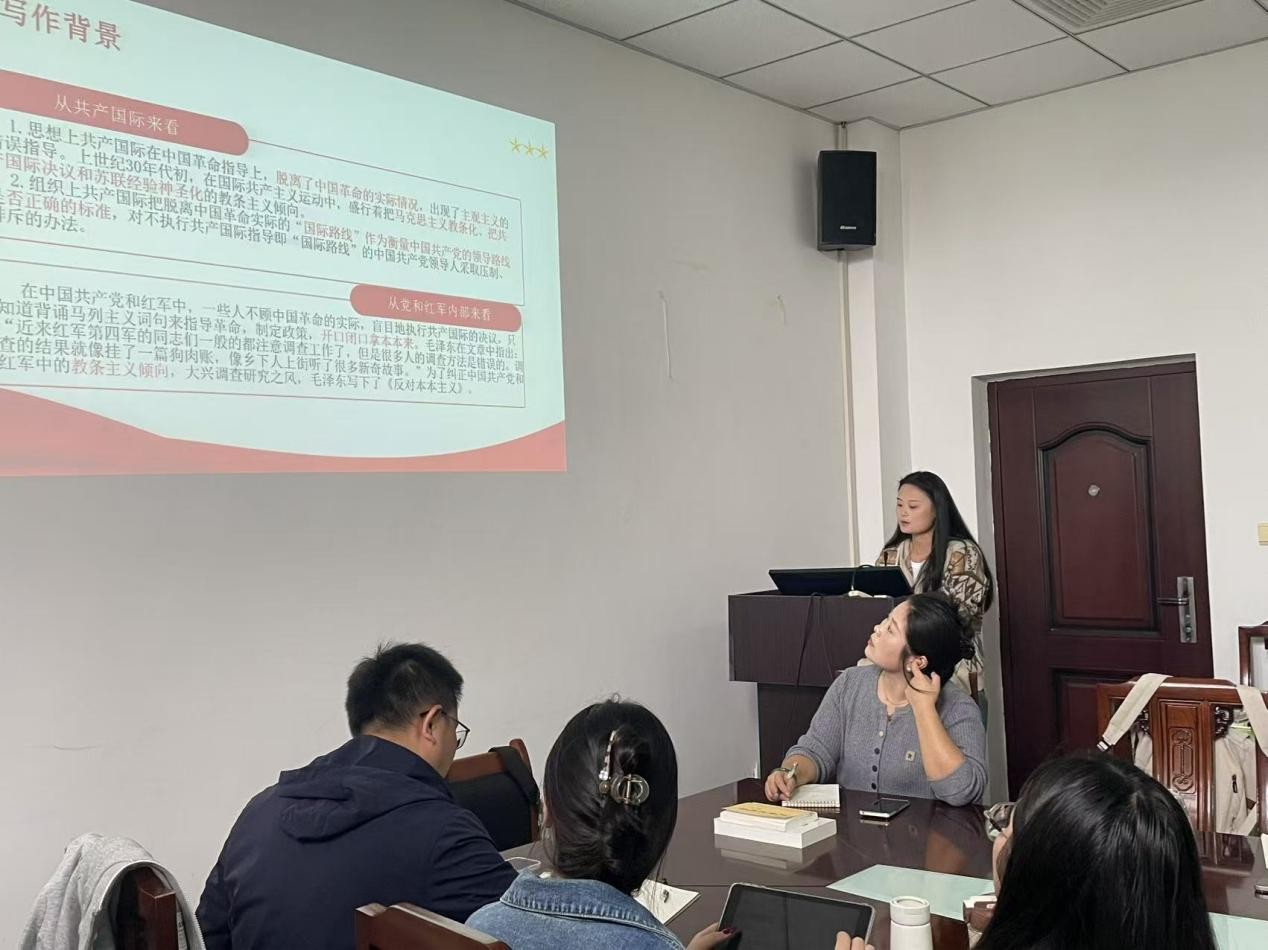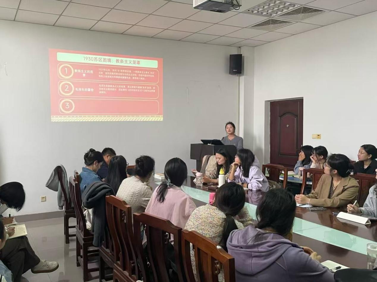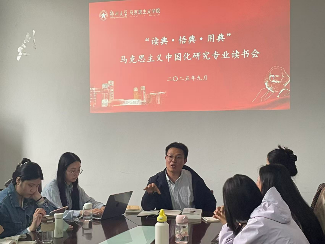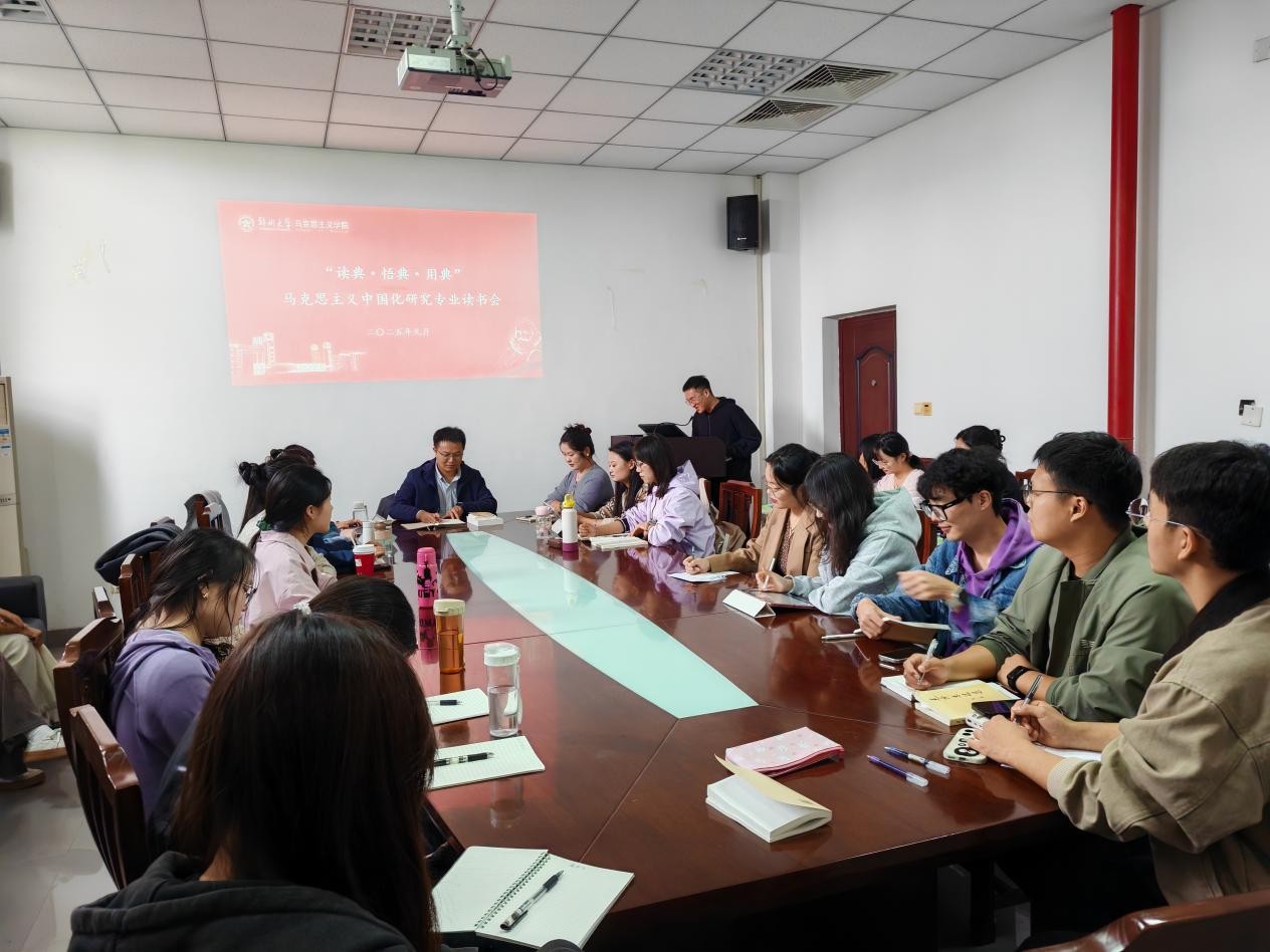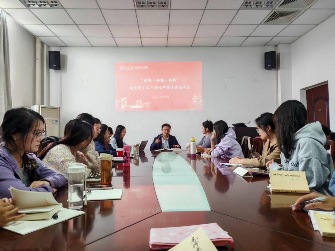 为深入贯彻落实党的二十届四中全会精神和习近平总书记关于学校思政课建设重要指示精神,不断提升研究生的学术素养和思辨能力,近日,马克思主义中国化研究专业举办“典耀”读经典活动。学院教师杜志勇指导本次读书会活动,马克思主义中国化研究专业2024级、2025级硕士研究生参加。