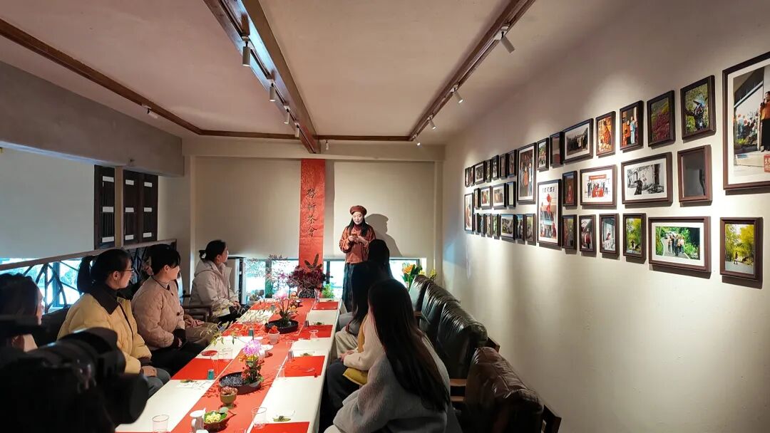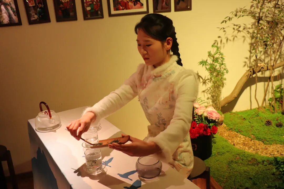 带着对大别山精神的思考,团队拜访了信阳毛尖茶艺非遗传承人杨静。从热闹的茶文化交流活动,到安静的茶艺表演厅,再到深入的采访,队员们经历了一场完整的文化体验。