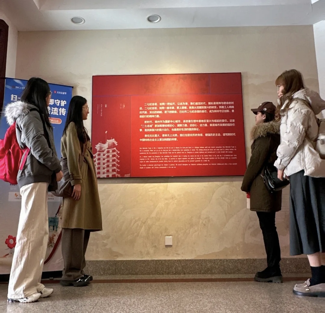这一站,团队创业来到了郑州的地标——二七纪念塔。这座双塔并联的建筑,不仅是城市的象征,更是中国工人阶级不屈抗争精神的化身。拾级而上,馆内陈列的图片和实物将团队成员带回了1923年那个寒风凛冽的二月。京汉铁路工人大罢工的怒吼仿佛还在耳畔回响,施洋、林祥谦视死如归的气概震撼着每一位队员的心灵。通过参观学习,团队成员将“工人阶级抗争”的精神内涵铭记于心。二七精神所蕴含的团结、奉献与坚守,正是新时代青年在强国建设征程中不可或缺的精神力量。