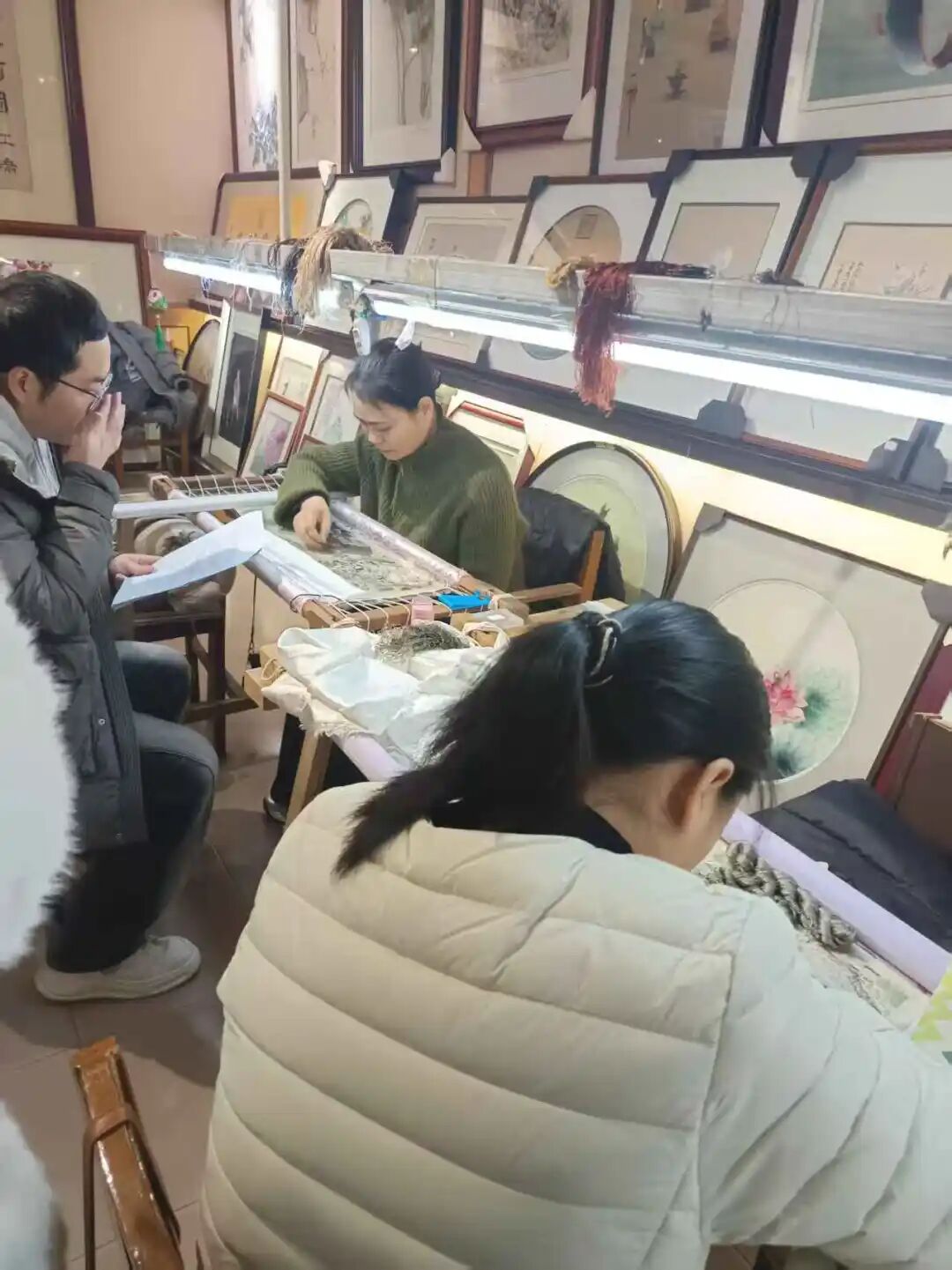 随后,团队成员与博物馆负责人展开深入对话,详细了解汴绣的传承现状。开封宋绣艺术博物馆致力于推动宋绣的传承与发展。为了让更多的人了解到宋绣的魅力,他们定期举办展览活动,并邀请国内外的专家前来交流研讨。这些举措不仅丰富了公众的文化生活,也为宋绣艺术的推广起到了积极作用。同时负责人也坦言,随着社会快速发展,生活节奏加快,年轻一代面临更多选择,愿意沉下心来学习繁复汴绣技艺的人越来越少,人才匮乏已成为制约汴绣传承与发展的主要难题,这份古老技艺正面临着传承断层的困境。