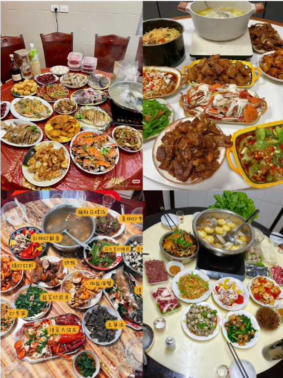桌上必有鸡、鱼、豆腐、韭菜,取吉庆有余、福气长久之意;土楼人家的围炉宴更添世遗韵味,一菜一吉祥,一桌一乡愁。饭后守岁坐寿,彻夜不眠为长辈添福寿,灯火可亲里,是闽南人最珍视的家族温情。