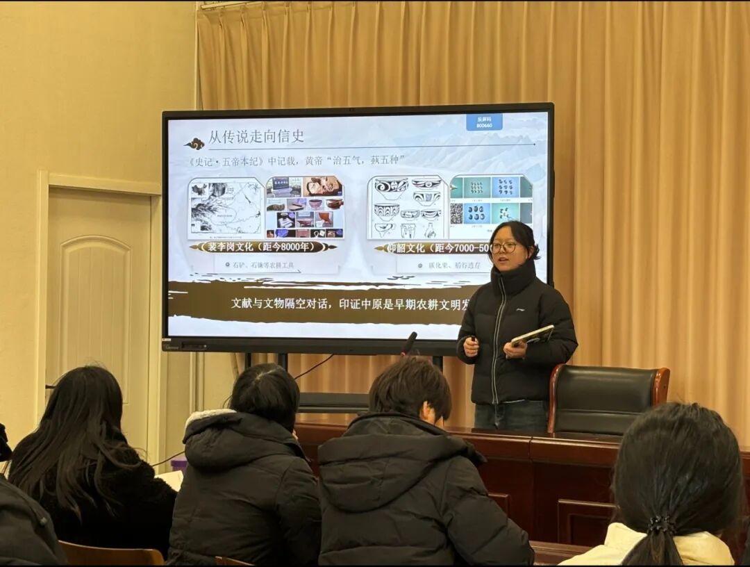 实践队队员马克思主义学院2024级本科生熊昕悦直面“1644史观”等错误思潮,以郑州商城遗址与现代郑州城址的叠压关系为具体证据,驳斥“文明中断论”。随后,通过呈现清明公祭黄帝大典、“黄帝IP”文创产品开发、文化进校园等当代传承案例,展示了黄帝文化的“创造性转化与创新性发展”。