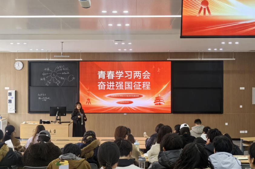 为引导广大青年团员深入学习领会两会精神,准确把握国家发展大局和民生政策,增强政治认同、思想认同、情感认同,激励青年将个人理想融入强国建设、民族复兴的伟大征程,马克思主义学院2023级本科生团支部特开展“青春学习两会,奋进强国征程”主题团日活动。