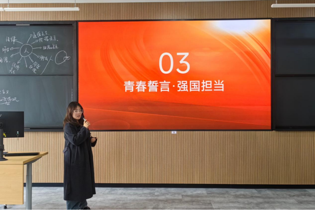 学习两会精神,不仅在于理解,更在于践行;不仅在于思考,更在于承诺。本环节以“青春誓言”为主题,由主持人带领同学们回顾本次团日活动的学习收获,引导大家思考“作为强国一代,我该如何行动”。随后,每位同学在事先发放的“青春誓言卡”上,郑重写下一句属于自己的青春誓言。