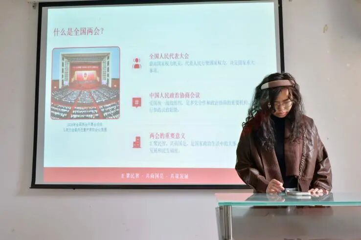 本次团日活动共分为三个环节:蓝图解码·理论夯基——两会精神专题导学;热词邂逅·思维碰撞——“两会关键词盲盒速递”;知行合一·影动深悟——时政问答与视频联动研学。