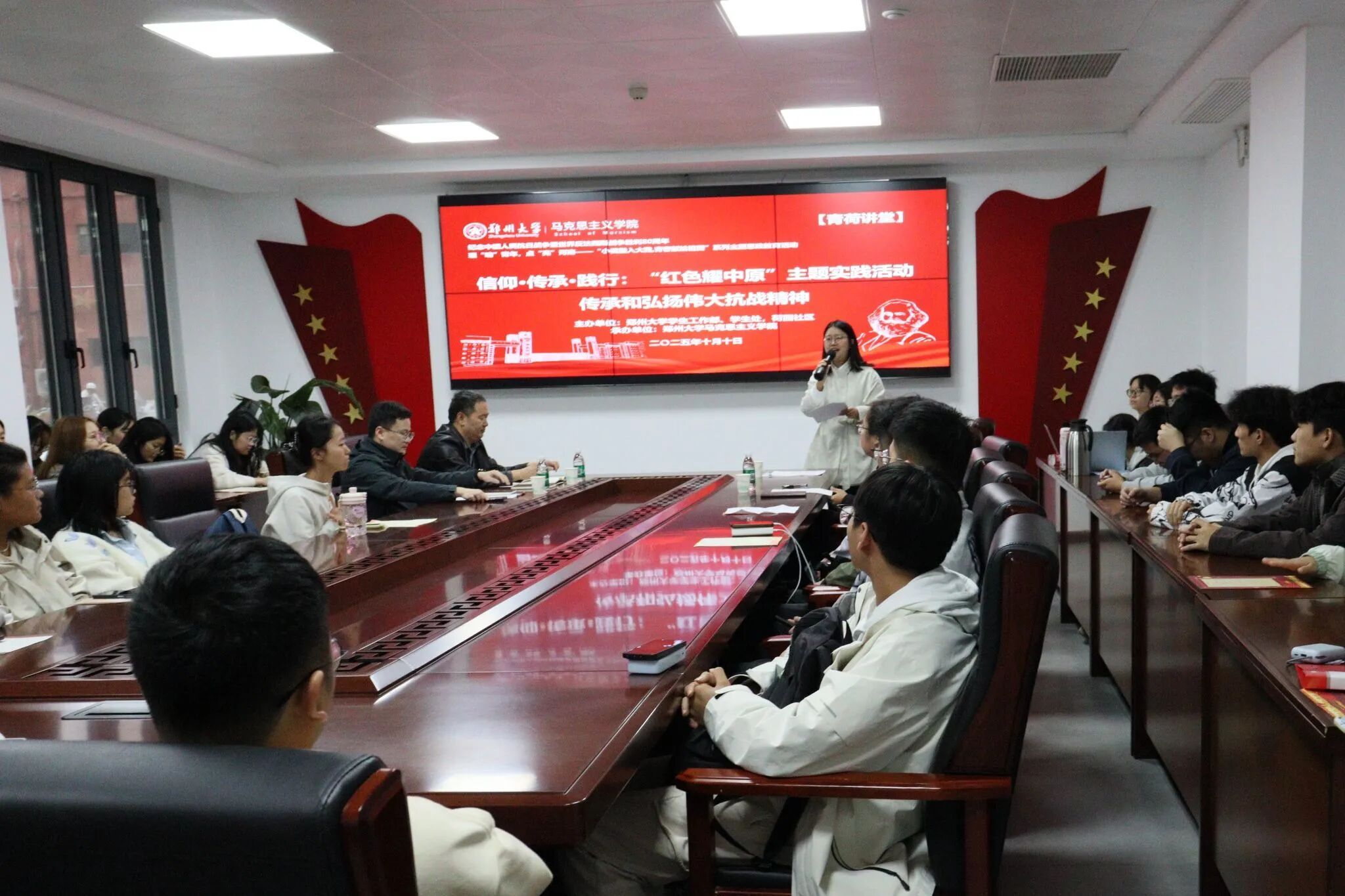 主动参与学院“青荷讲堂”“红色耀中原”等品牌活动筹备,承担现场组织、理论宣讲、后勤保障等任务,成为老师眼中的“靠谱团队”、同学心中的“热心伙伴”。