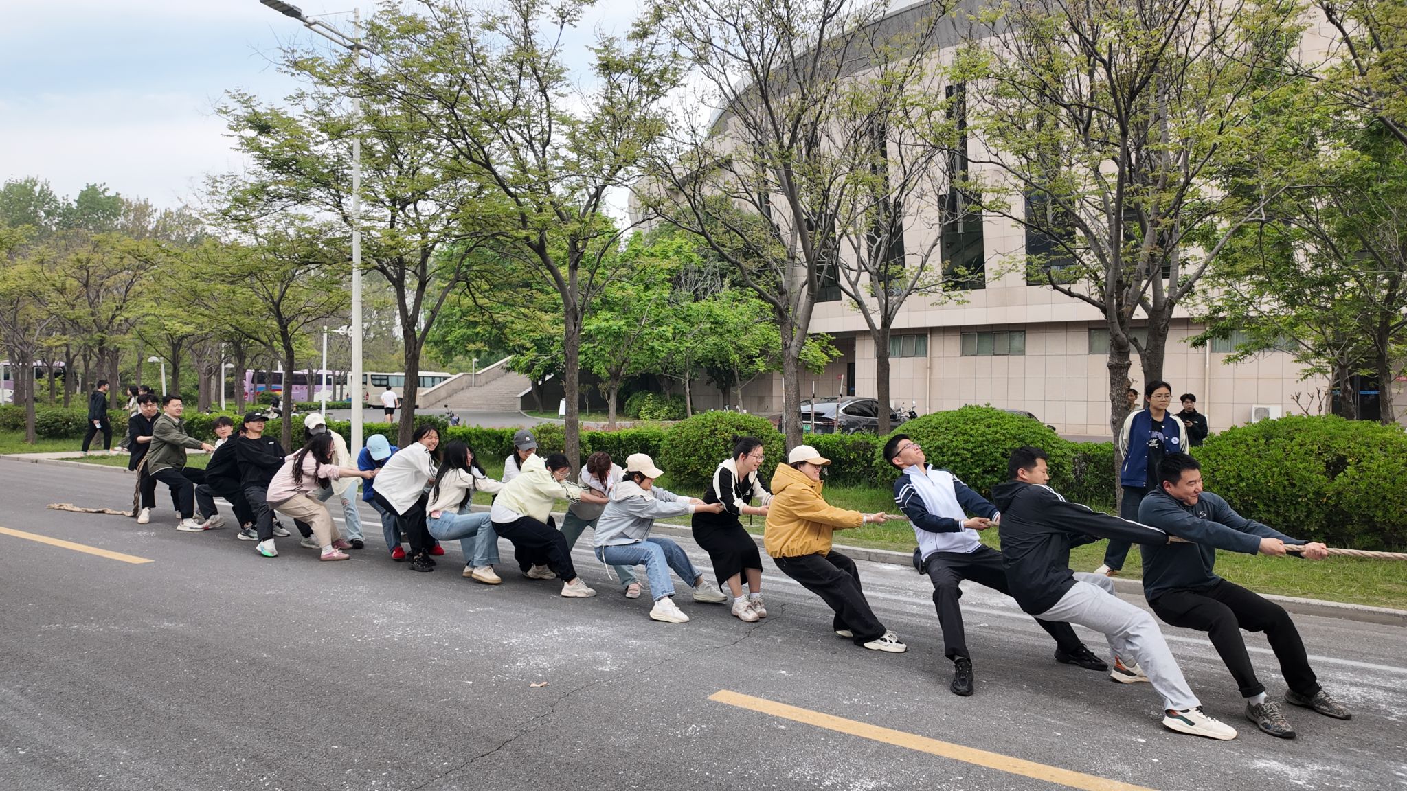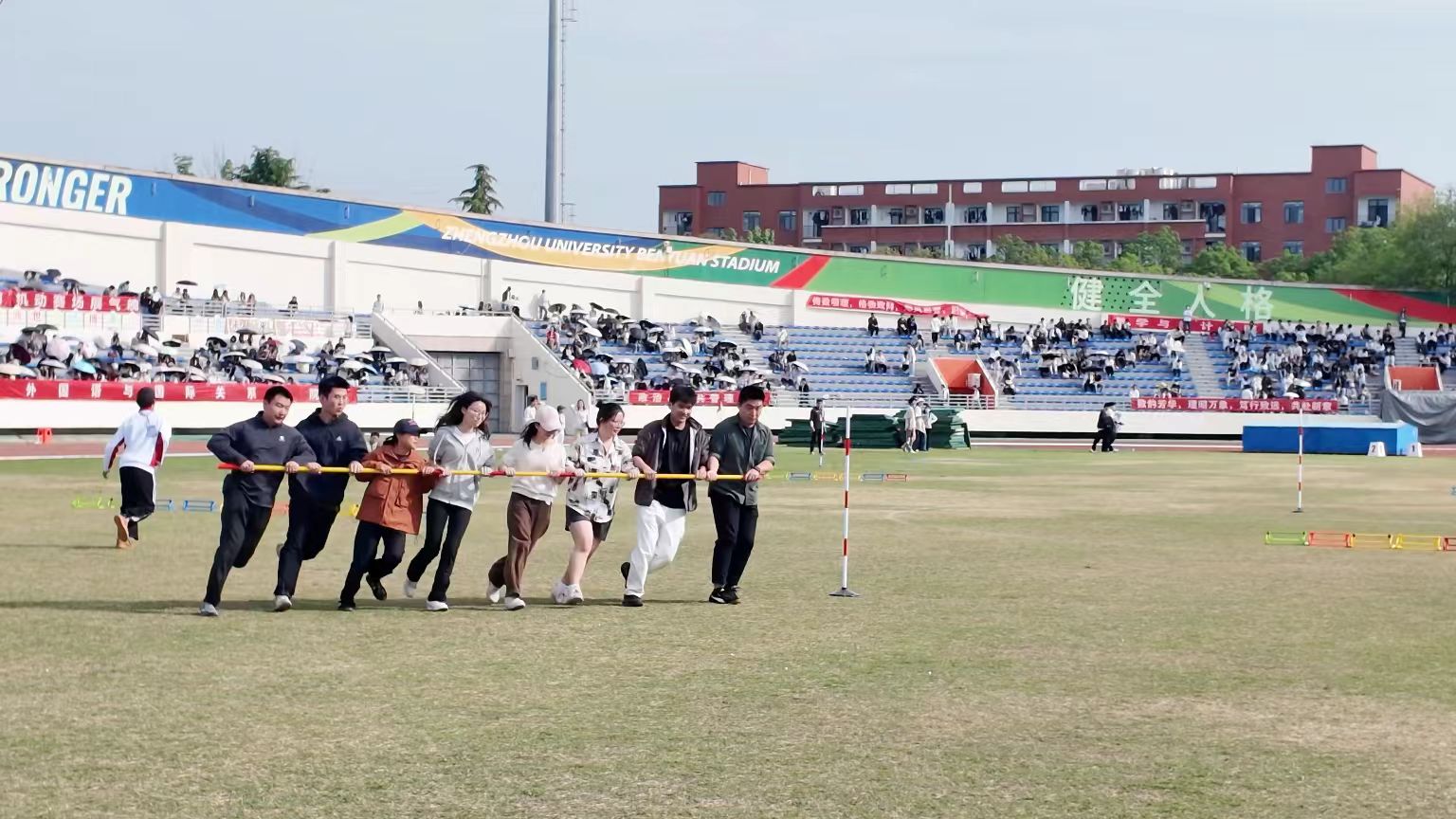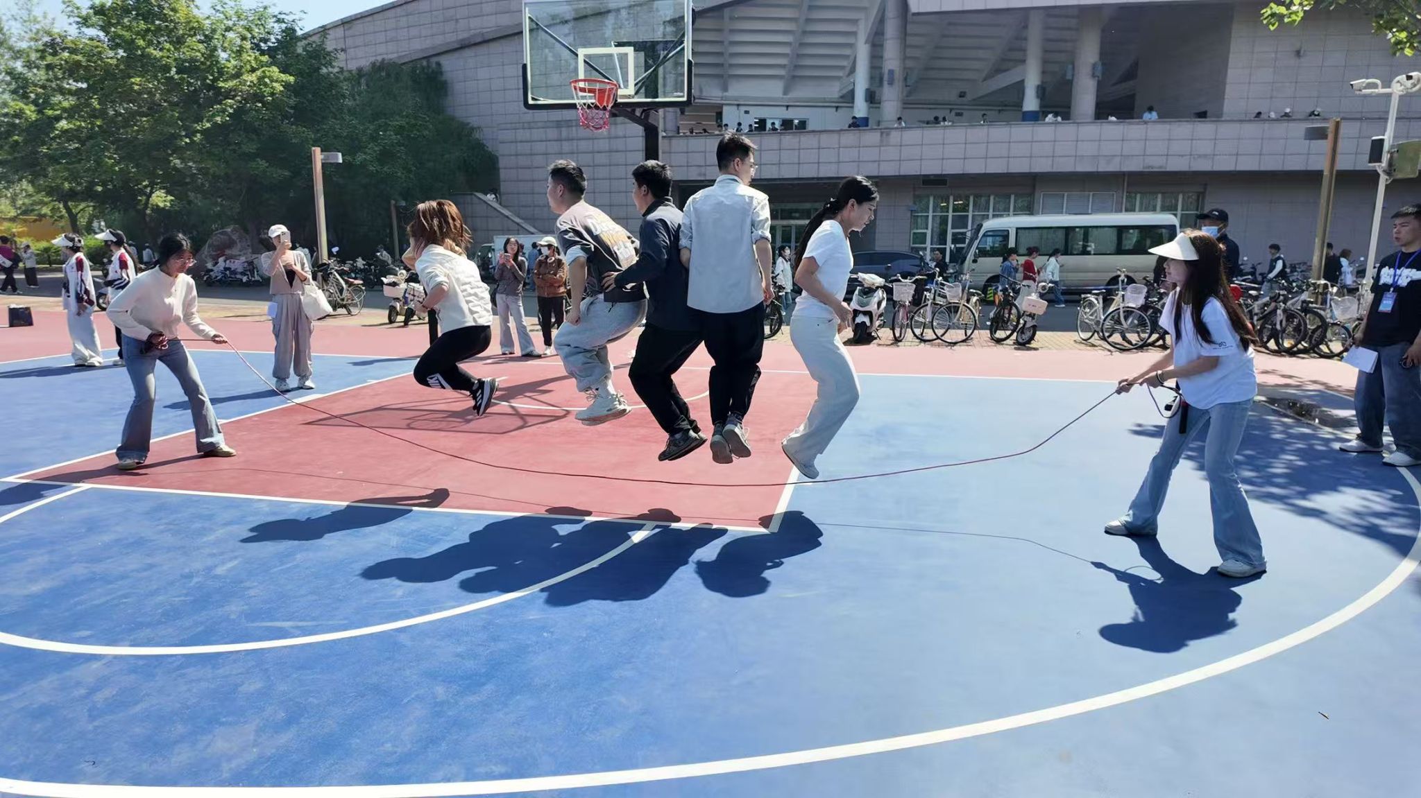跳小绳赛场,单摇如飞燕掠水,双摇似车轮疾转,脚尖轻点间带起残影。跳大绳多人同起同落,长绳翻飞,毫厘不差。拔河项目,双方各执粗麻绳,哨声一响,红标反复拉锯,学院健儿齐喊“一二、一二”,声浪如潮,这便是“心往一处想,劲往一处使”最滚烫的注脚。