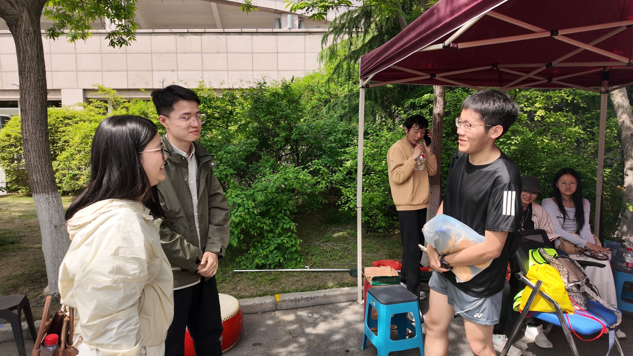 赛场上的高光时刻,离不开幕后那一群沉默而忙碌的身影。马院大本营前展板上“马不停蹄,自强不息”的标语赫然在目,后勤同学各司其职:矿泉水、急救包、湿巾一应俱全,比赛提醒、递水、发放号码布、成绩即时关注——这些细碎而温热的瞬间,如春风化雨,无声浸润着每一个人的心。这里没有奖牌,却是所有荣光的起点。