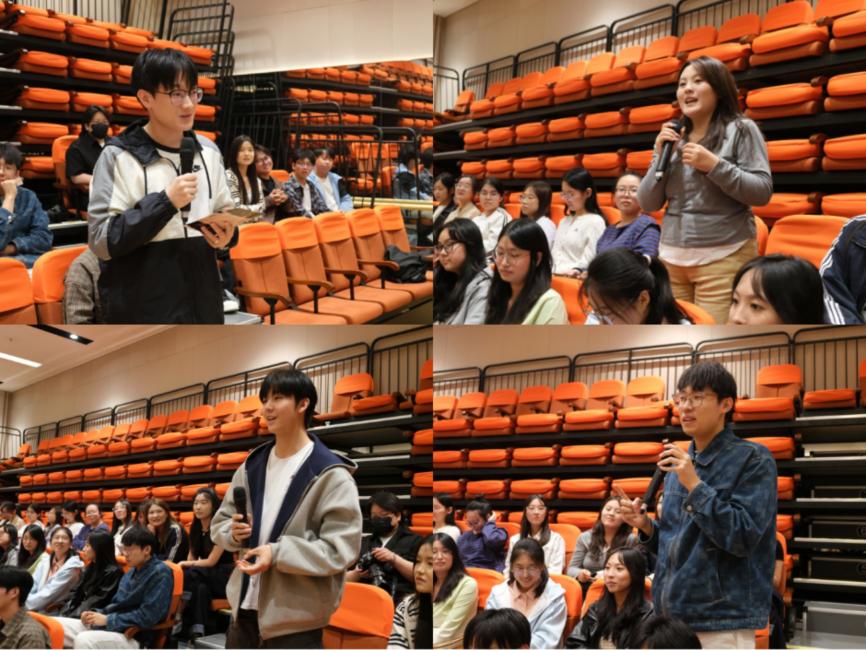 演出落幕,一场围绕“戏曲传承与创新”的零距离对话随即展开。马克思主义学院党委副书记高昂率先发言,她强调艺术教育与思政育人深度融合的重要性,认为此次活动为学生搭建了“美育+思政”的实践平台。与会同学结合主创团队提出的问题,发表观剧感受和见解,提出“跨界融合”“科技赋能”“内容年轻化”等方向和“多视角剪辑”“戏曲解说”等方法,为戏曲传播注入青春思路。