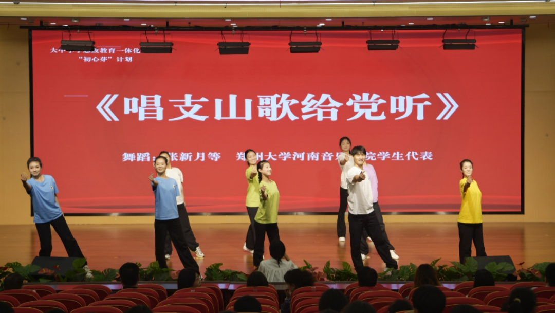 理论宣讲环节,郑州大学马克思主义学院本科生平雯文等以《烽火长歌》为题,回望革命历史中的英雄事迹,激励青少年从中汲取力量,为民族复兴不懈奋斗;2025级博士研究生崔克兵通过《义勇军进行曲的源与流》,系统梳理国歌从诞生到成为国家象征的历史脉络,阐释其中蕴含的民族精神与时代价值;新乡市“红领巾”巡讲团成员王紫骞、张家珲、周佳莹、陈懿果等分别以《拆盲盒,见国潮》《小导游说楼村》《千年古韵传新声》《老味道的新传奇》为题,从儿童视角生动展现祖国发展新貌与传统文化活力;郑州大学河南音乐学院学生张新月等表演舞蹈《唱支山歌给党听》,以艺术形式抒发爱党爱国情怀,将现场气氛推向高潮。活动在深情歌声中圆满落幕,《如愿》的旋律寄托了对祖国未来的美好祝福,也凝聚起师生对民族复兴的共同期盼。