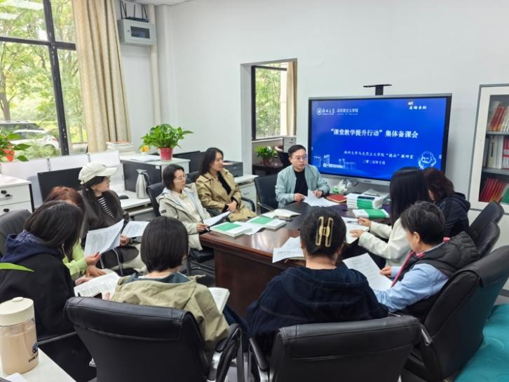 为进一步学习《教育部办公厅关于开展2025-2026学年高校思政课课堂教学提升行动的通知》相关要求,推进“德法”课程建设高质量发展,10月16日下午,“德法”教研室举行“课堂教学提升行动”集体备课会。会议由“德法”教研室主任王卫兵主持,教研室全体教师参加。