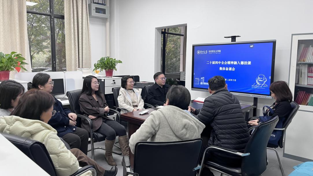 为深入贯彻落实党的二十届四中全会精神,系统学习《中共中央关于制定国民经济和社会发展第十五个五年规划的建议》(以下简称《建议》),10月30日,“德法”教研室举行党的二十届四中全会精神融入教学集体备课会。会议由教研室主任王卫兵主持,教研室全体教师参加。
