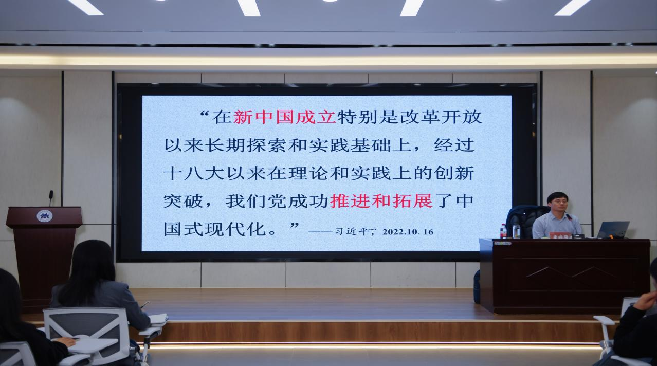 近日,学院邀请中共中央党校(国家行政学院)科学社会主义教研部教授、博士生导师康晓强莅临学院,作题为《中国式现代化蕴含的原理性理论成果》的专题讲座。本次讲座由学院党委副书记张芳芳主持,2025级硕士研究生参加。