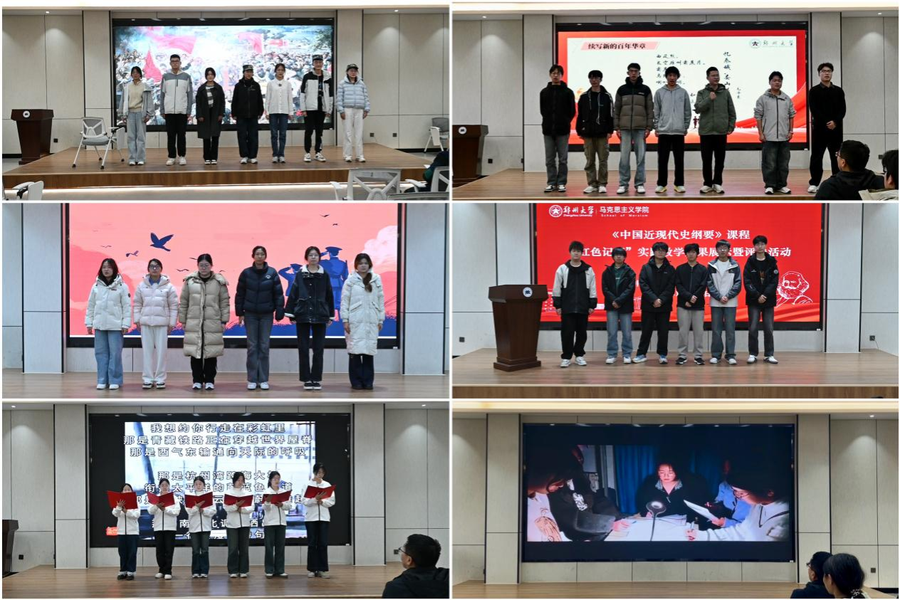 为深入学习贯彻党的二十届四中全会精神,扎实推进习近平新时代中国特色社会主义思想进教材、进课堂、进头脑,强化“大思政课”实践教学成效,传承红色薪火,厚植家国情怀,充分发挥思政课立德树人关键作用。11月24日,“纲要”教研室精心组织“红色记忆”实践教学成果展示暨评比活动。活动由教研室主任田向勇主持,教研室教师代表担任评委并全程参与。