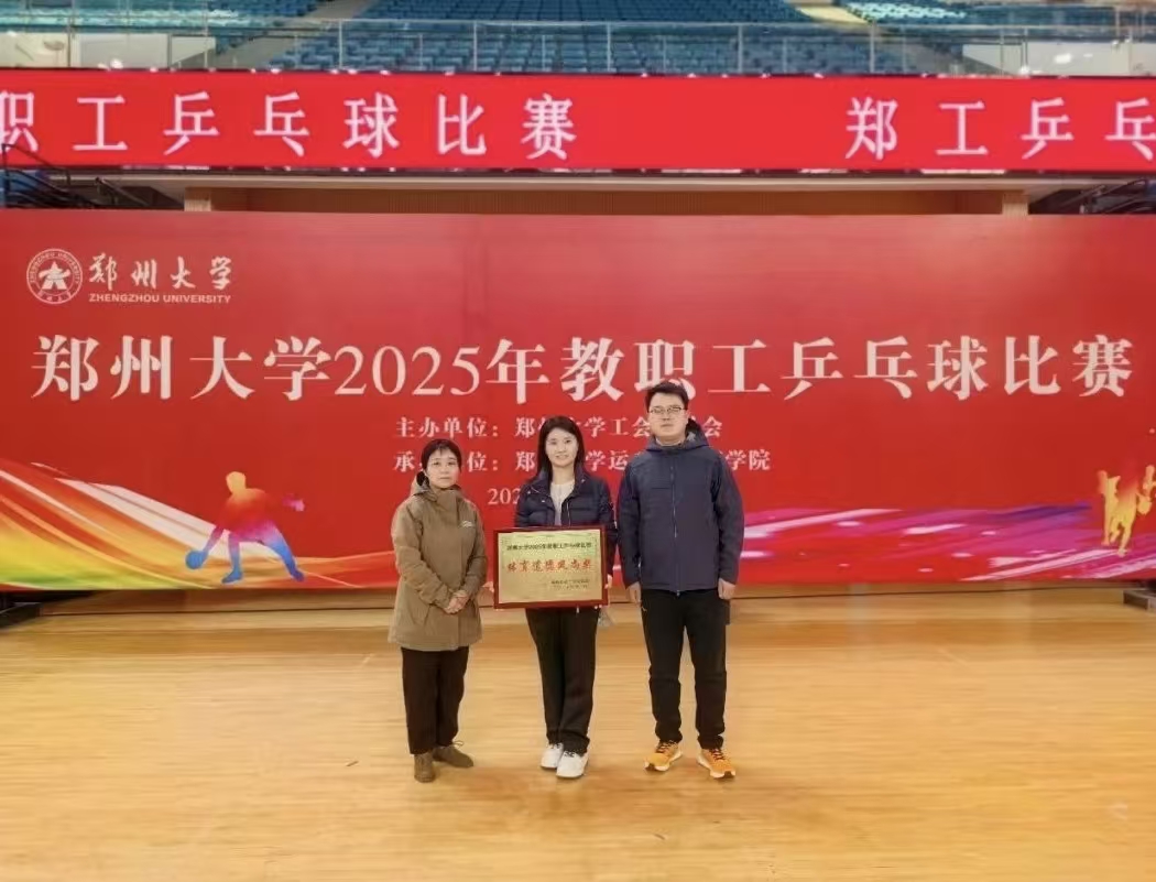 12月2日,郑州大学2025年教职工乒乓球比赛圆满落幕。马克思主义学院教职工代表队在比赛中展现出良好的精神风貌与体育道德,荣获“体育道德风尚奖”,学院党委副书记张芳芳代表学院接受表彰。