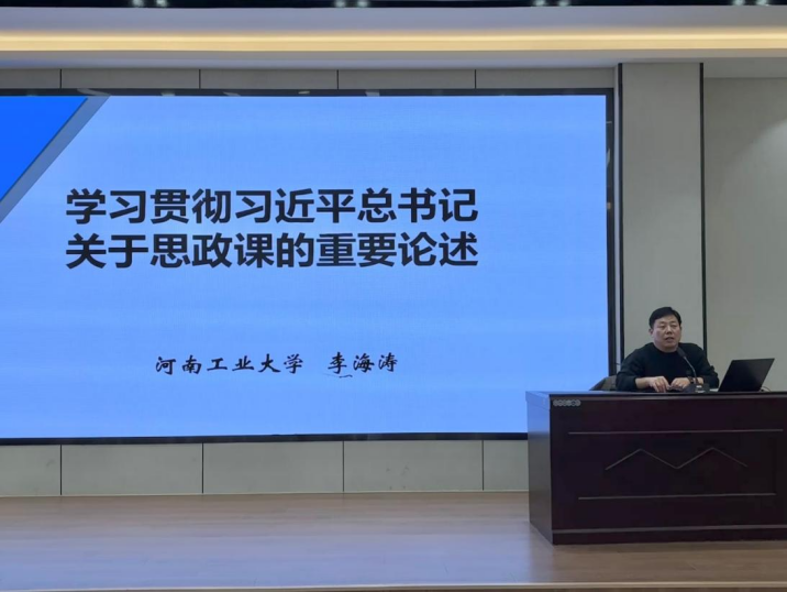 近日,学院举办“学习贯彻习近平总书记关于思政课重要论述”专题讲座,邀请河南工业大学马克思主义学院院长李海涛教授担任主讲嘉宾,学院研究生和教师代表参加。